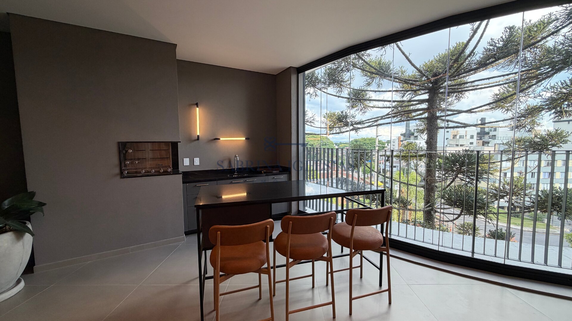 - Sala para 3 ambientes com cozinha integrada e sacada com churrasqueira;