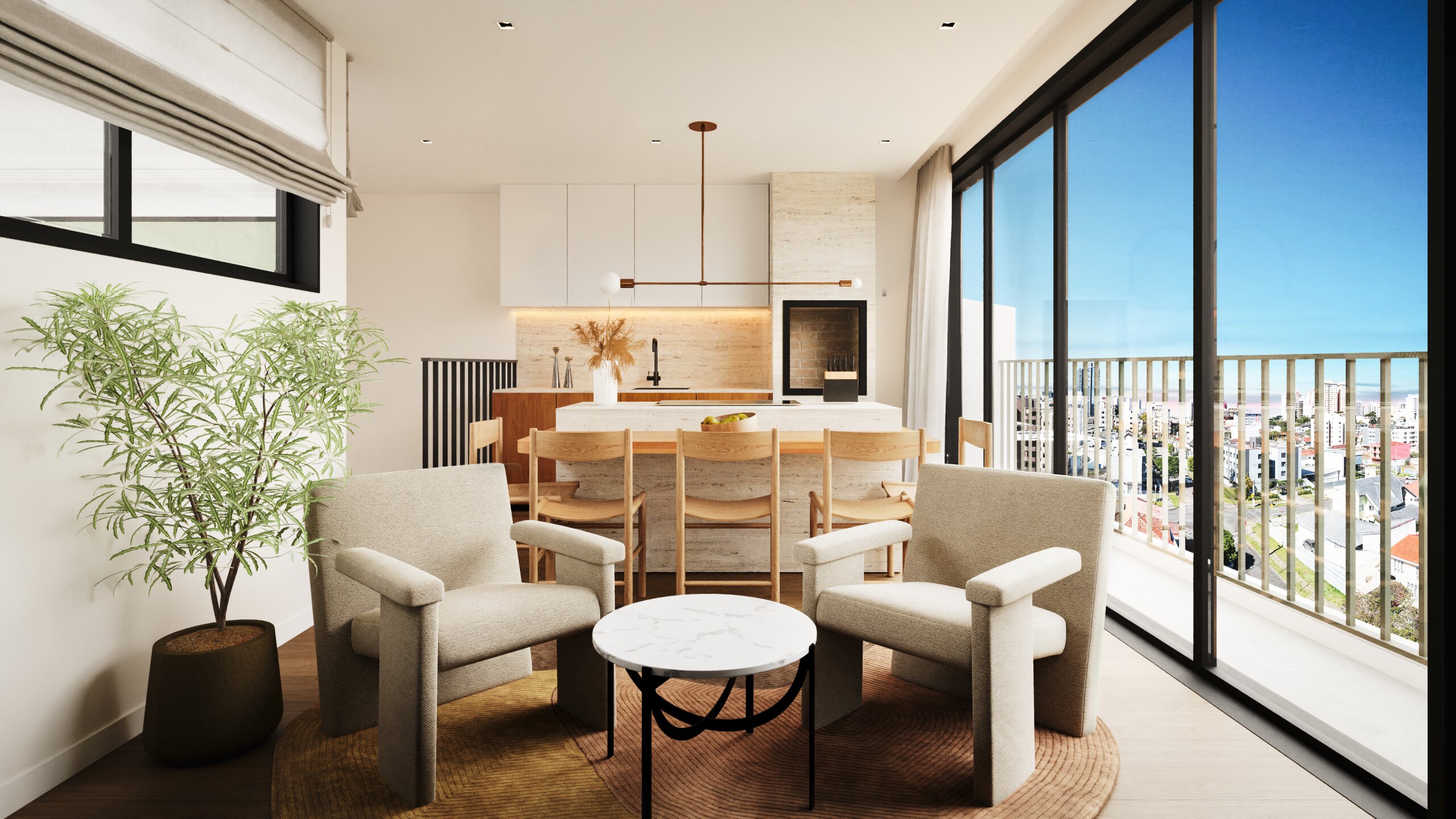 A Cobertura Duplex do Jobim 194 é a síntese do morar contemporâneo em Curitiba. Com 118 m² privativos e um generoso terraço de 41 m², esta cobertura reúne amplitude, sofisticação e a exclusividade de ter apenas uma unidade por andar em um edifício de arquitetura autoral.