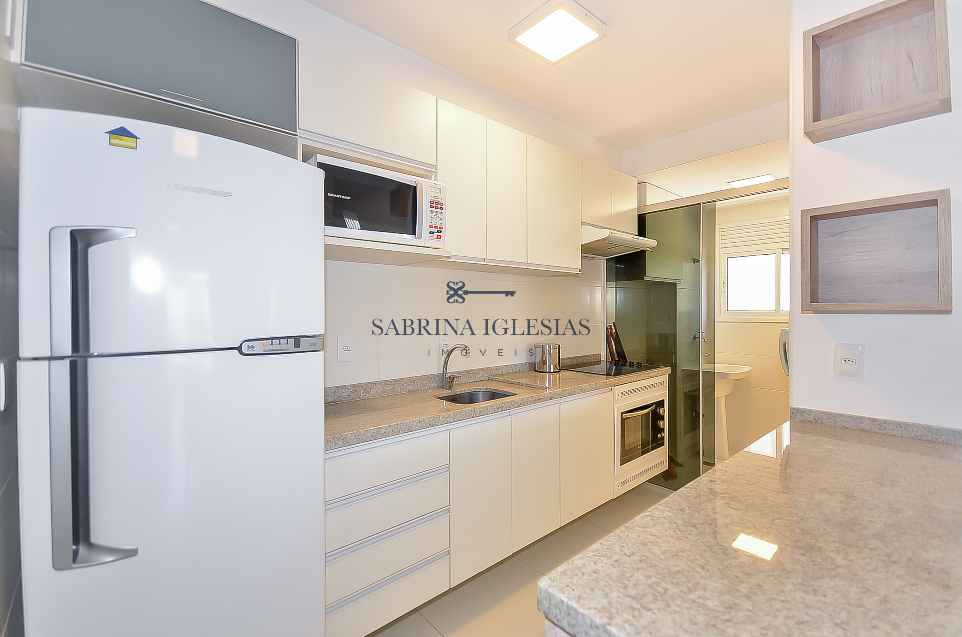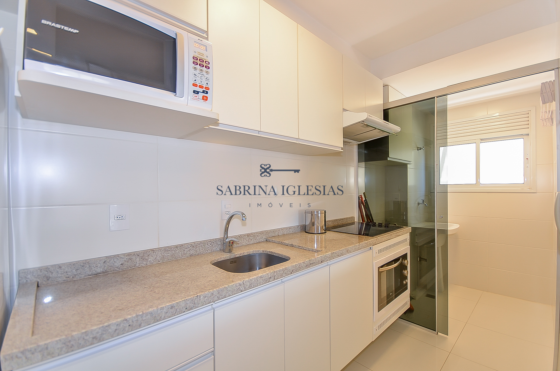 O apartamento está prontinho para morar, cozinha planejada com armários, cooktop, forno microondas, geladeira e bancada. Sala com sofá, ar condicionado, painelr e rack. Um quarto com armário e cama de casal. O banheiros têm a bancada em mármore, com cuba de semi-encaixe e uma sacada maravilhosa fechada em vidro sistema Reiki e churrasqueira.