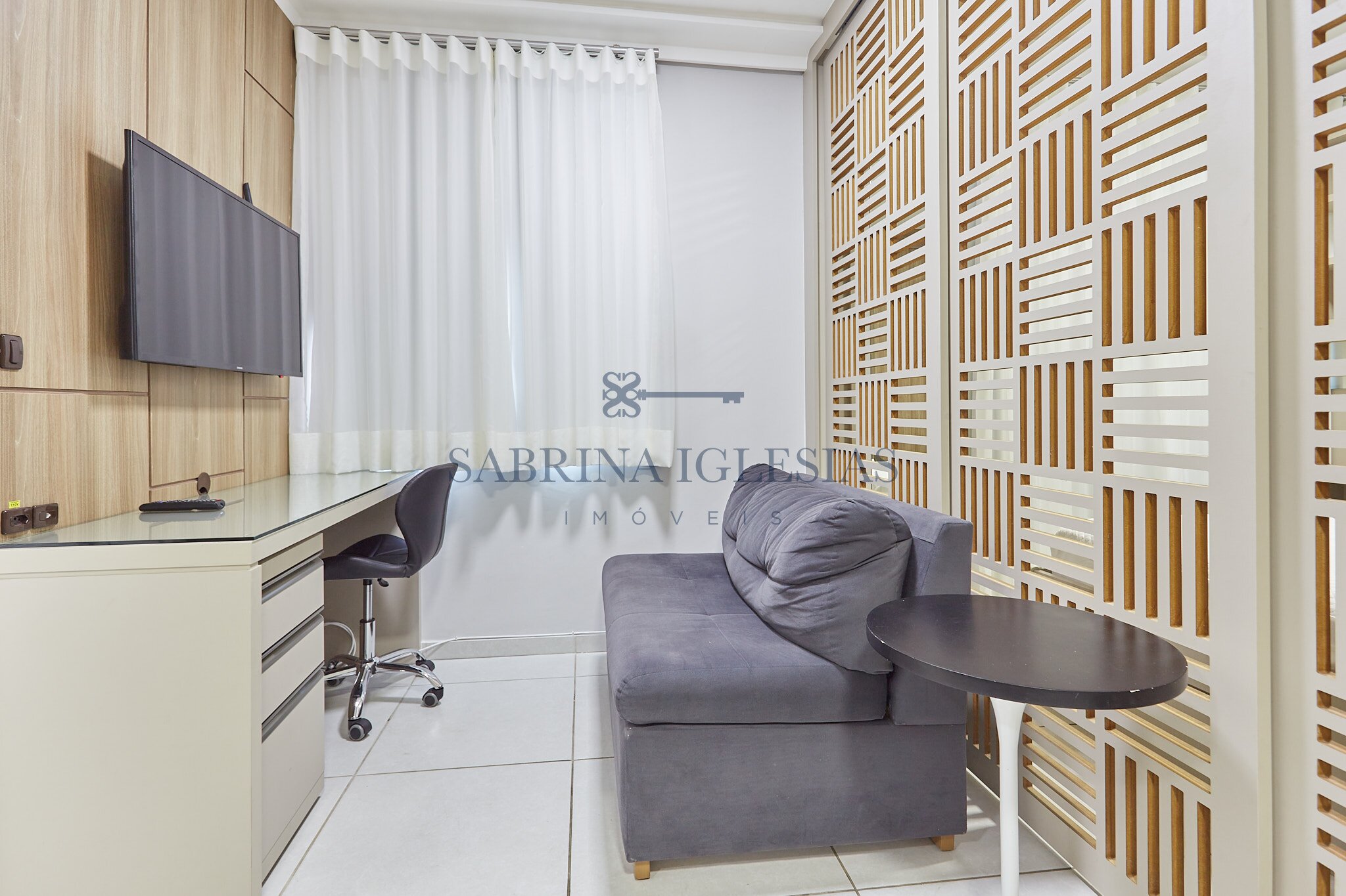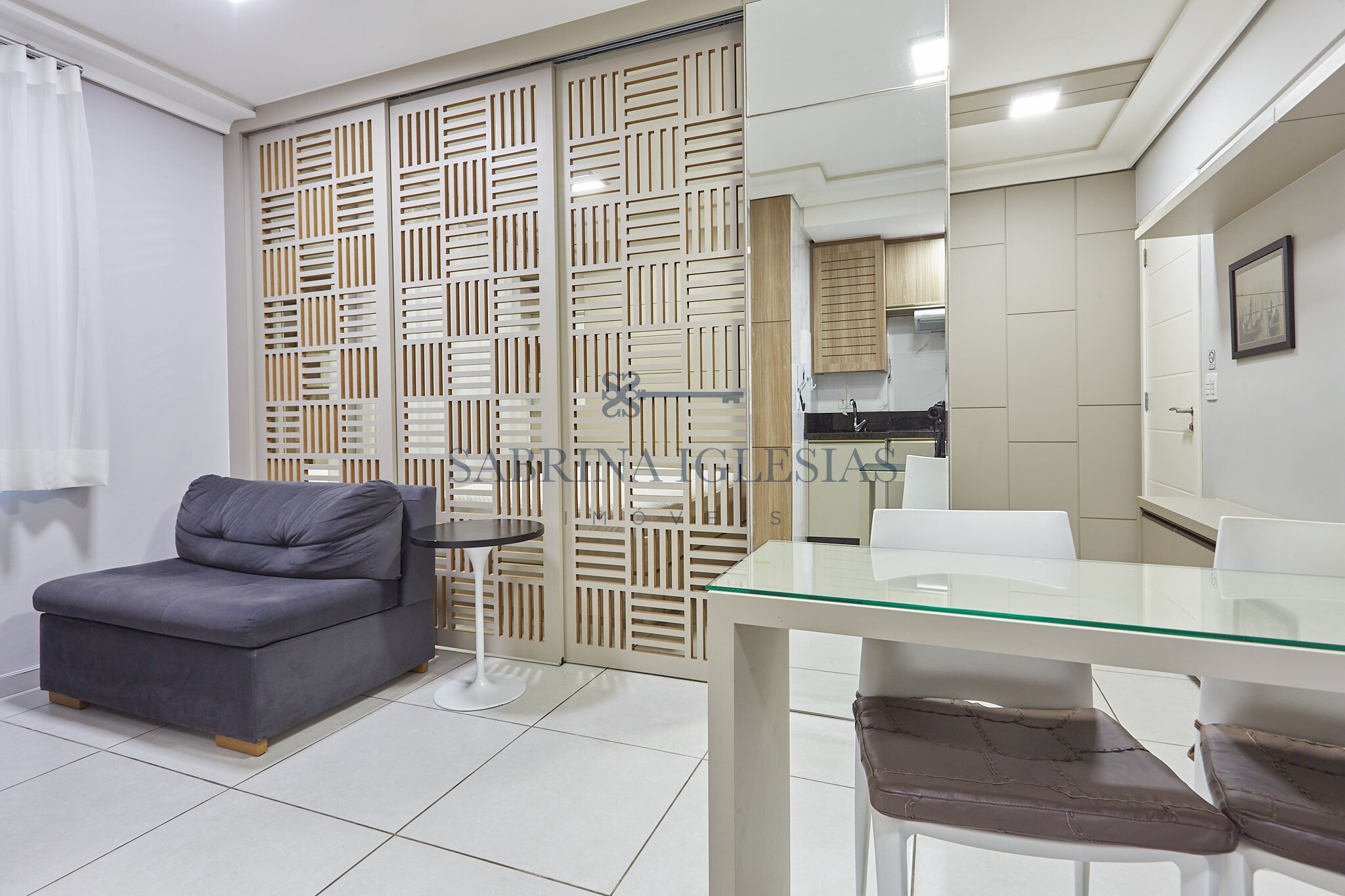 Este apartamento conta com 31 m² de área privativa, distribuídos em sala de estar, cozinha integrada, banheiro e 1 dormitório. Já vem totalmente mobiliado, pronto para morar, e com vaga de garagem que garante ainda mais comodidade.