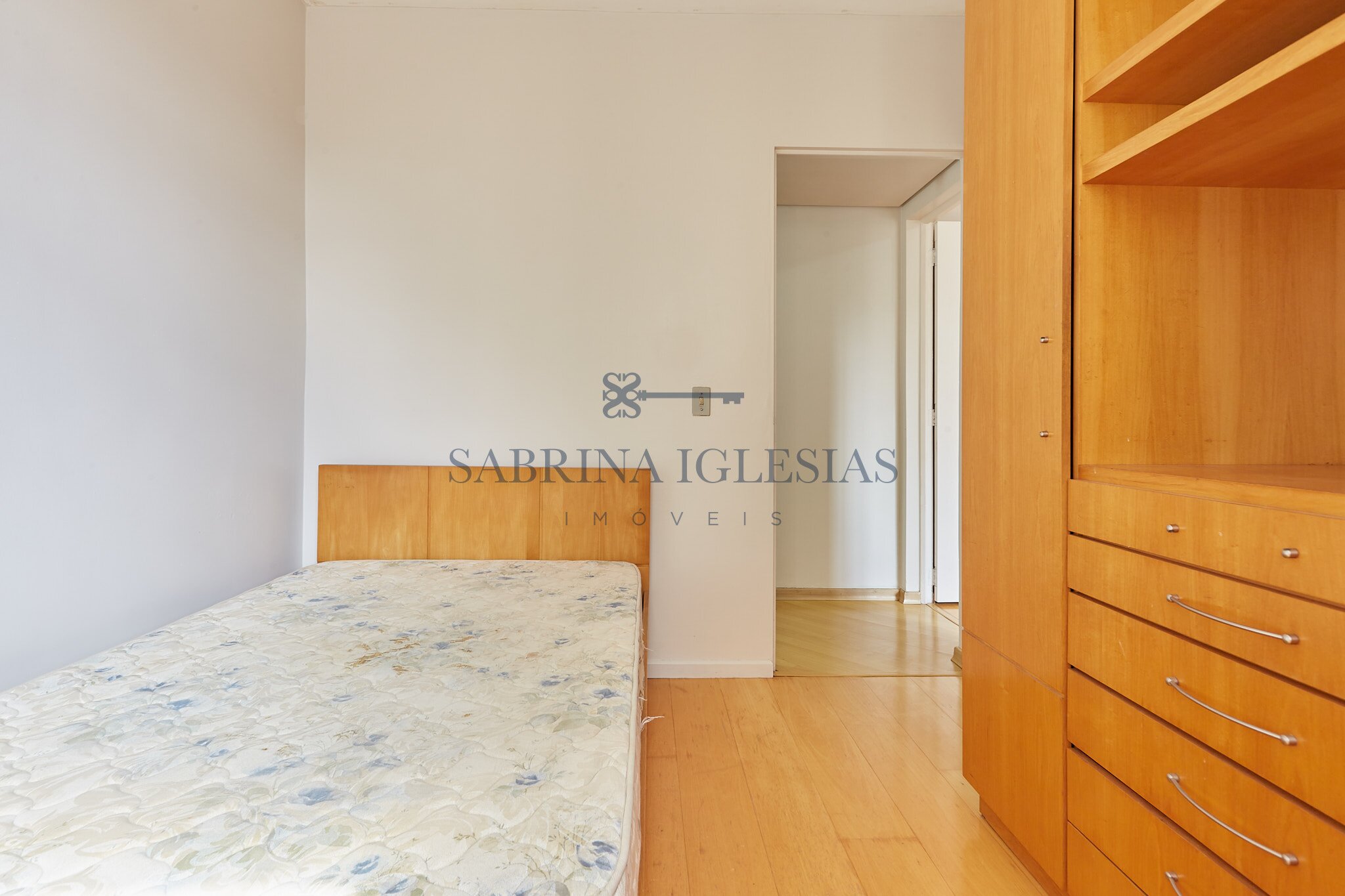 Apartamento com cozinha equipada e integrada com a sala e área de serviço ampla. Possui dois quartos arejados, sendo um quarto de casal com armários e cabeceiras e o outro quarto de solteiro com cama de solteiro, armário e escrivaninha.