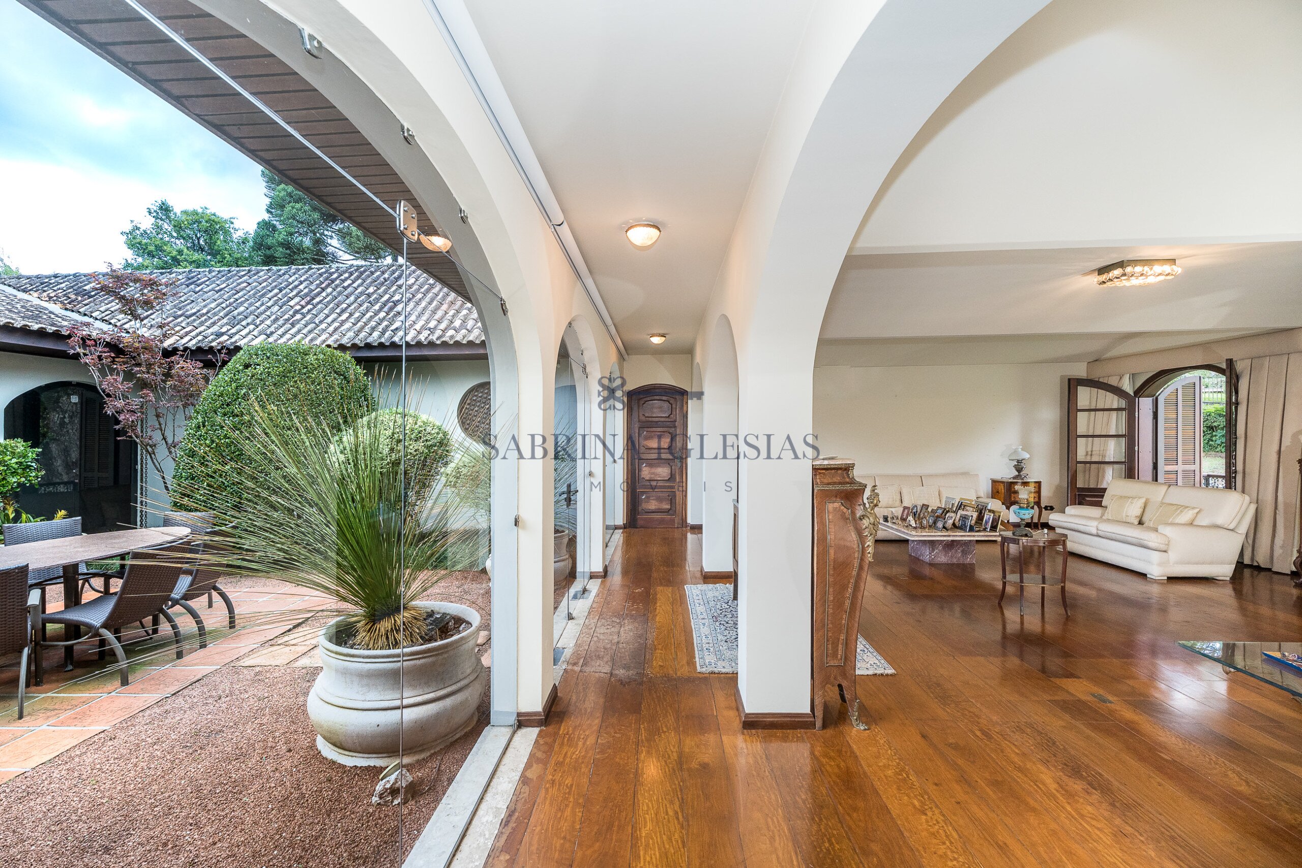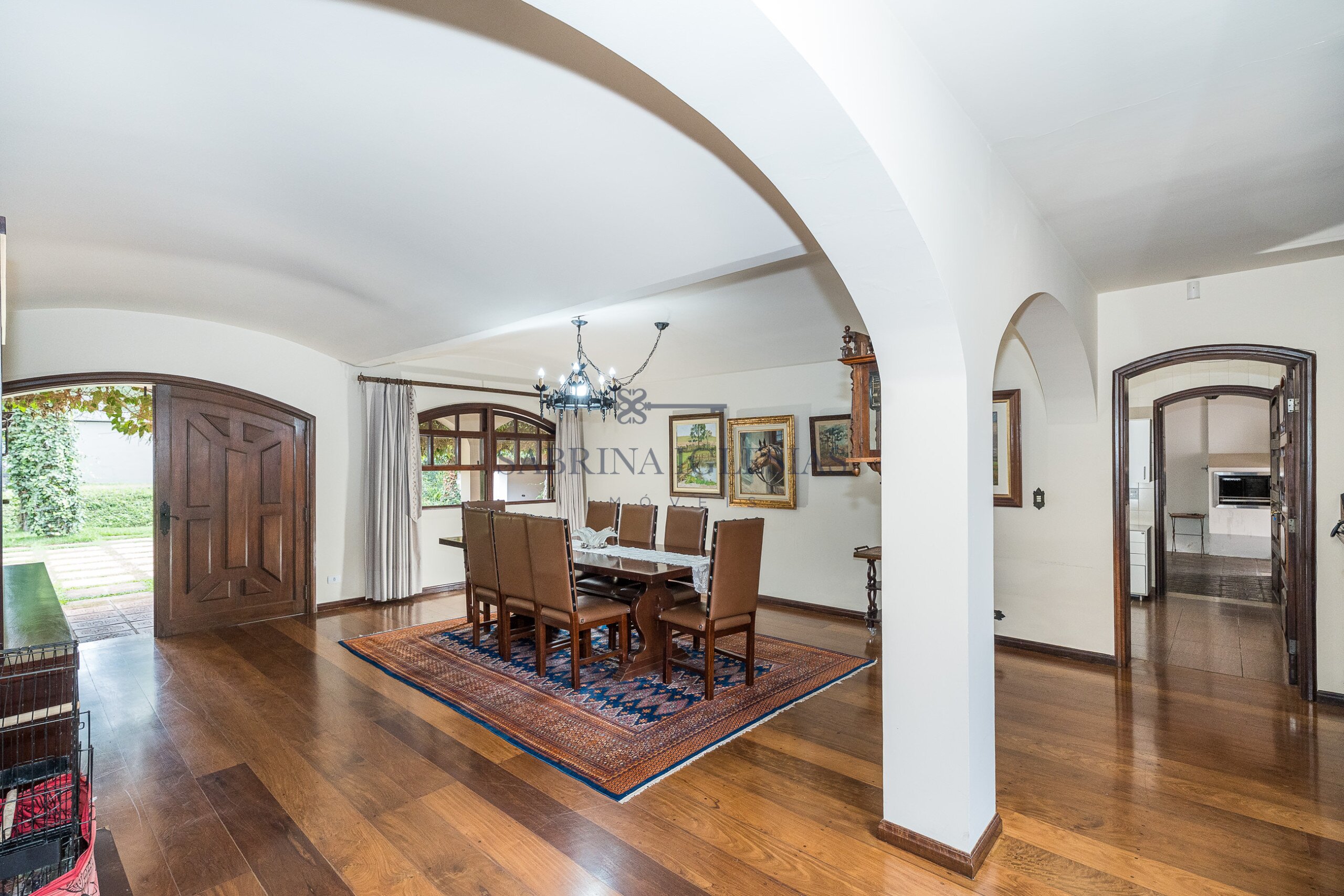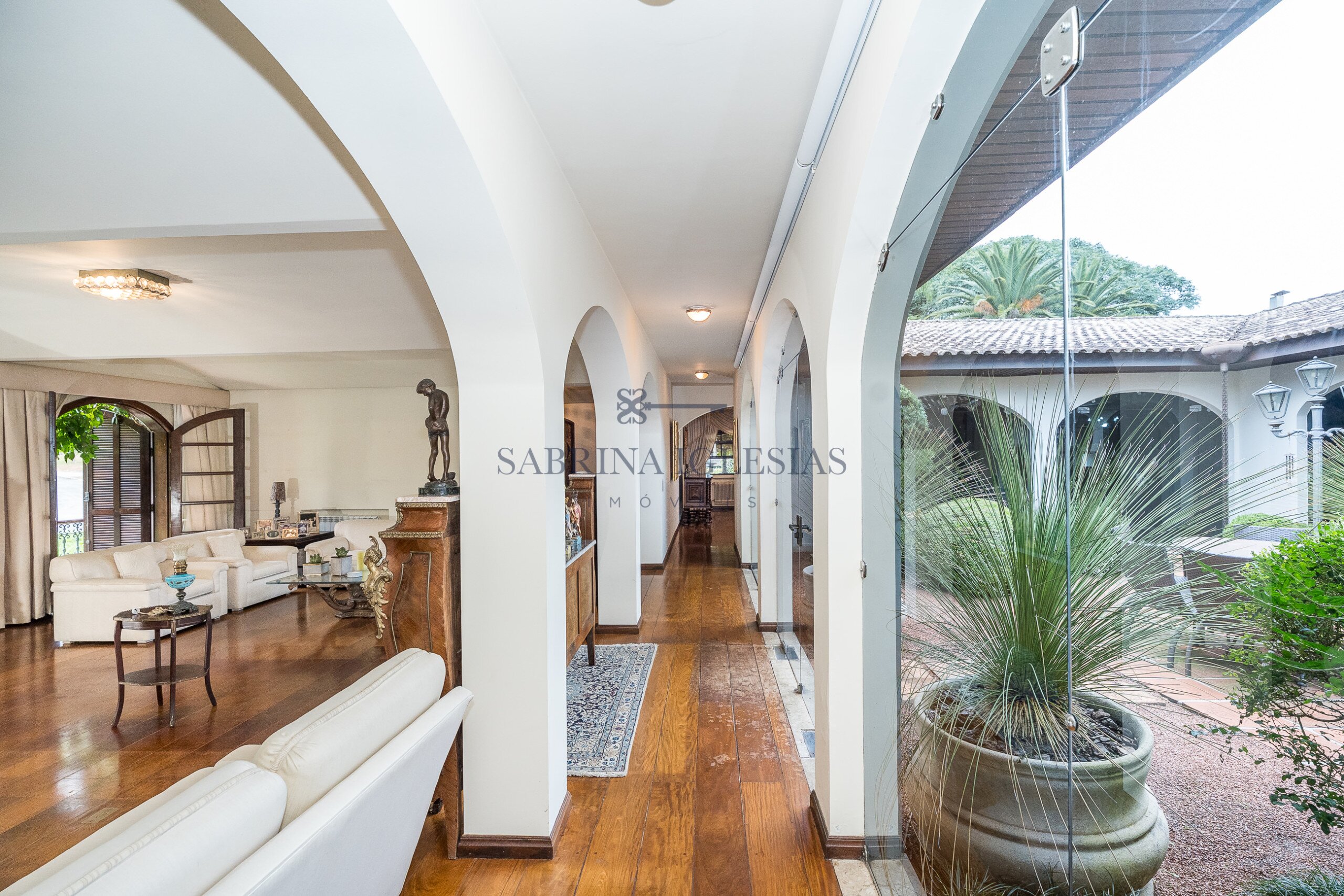 Casa térrea com 900 m² de área construída, implantada em terreno de 2.000 m², localizada em condomínio fechado no bairro Cascatinha, ao lado do Parque Barigui.