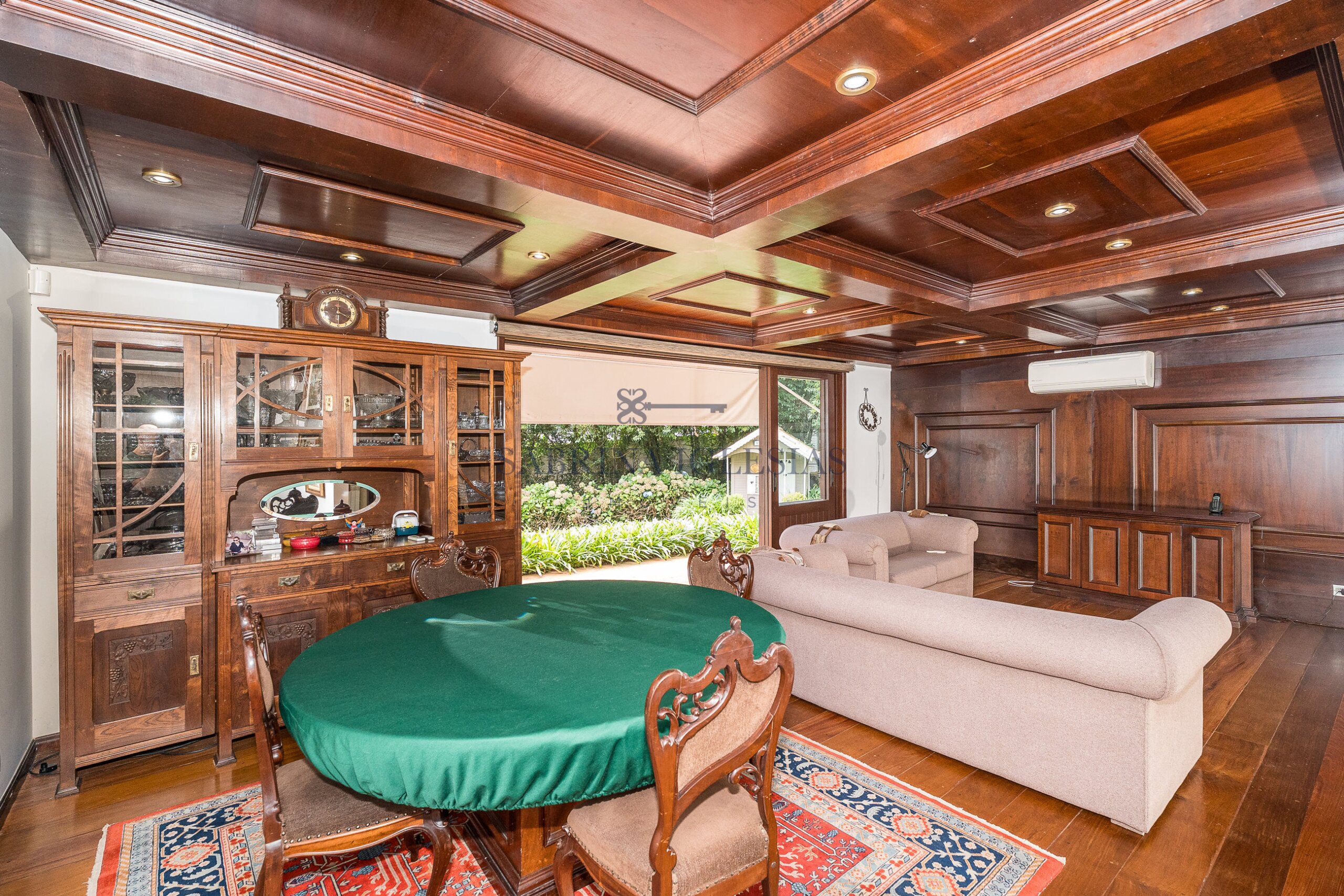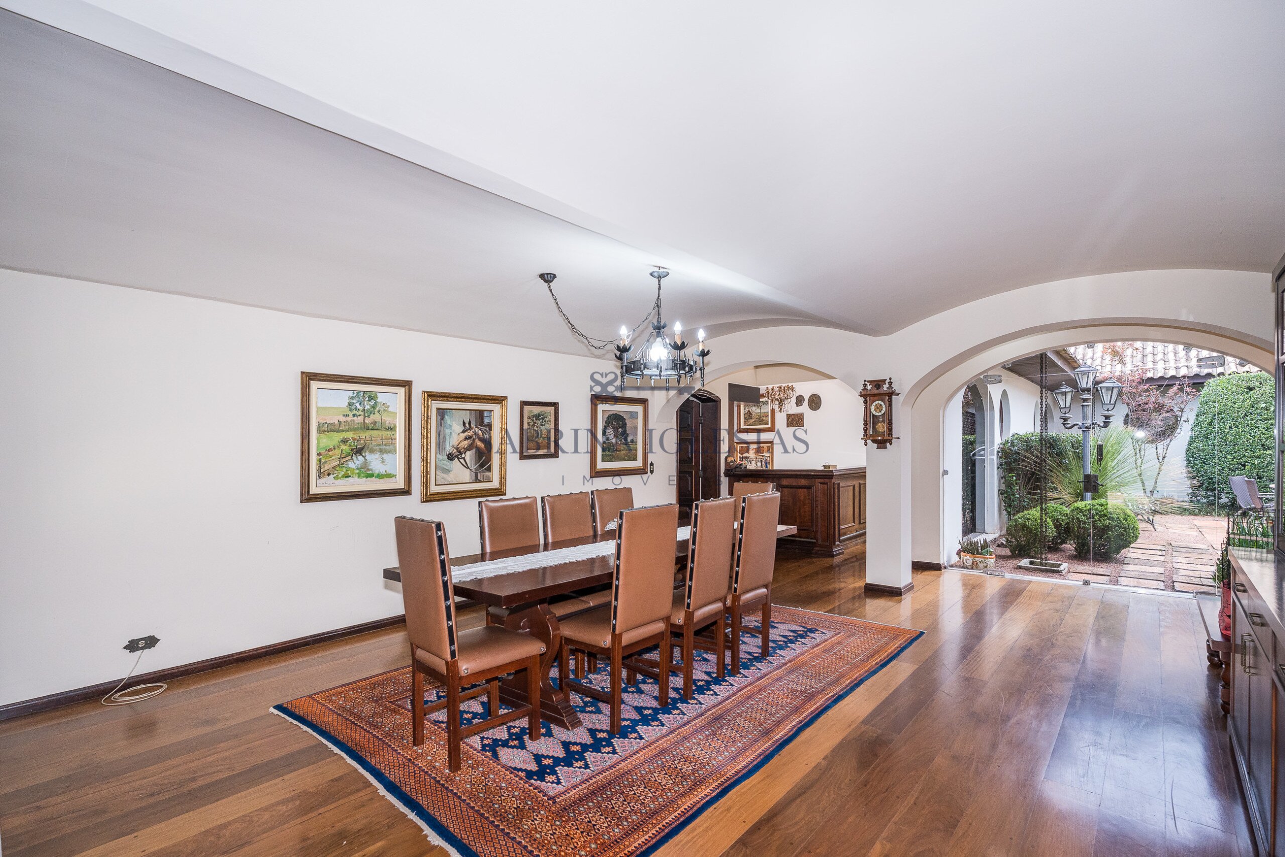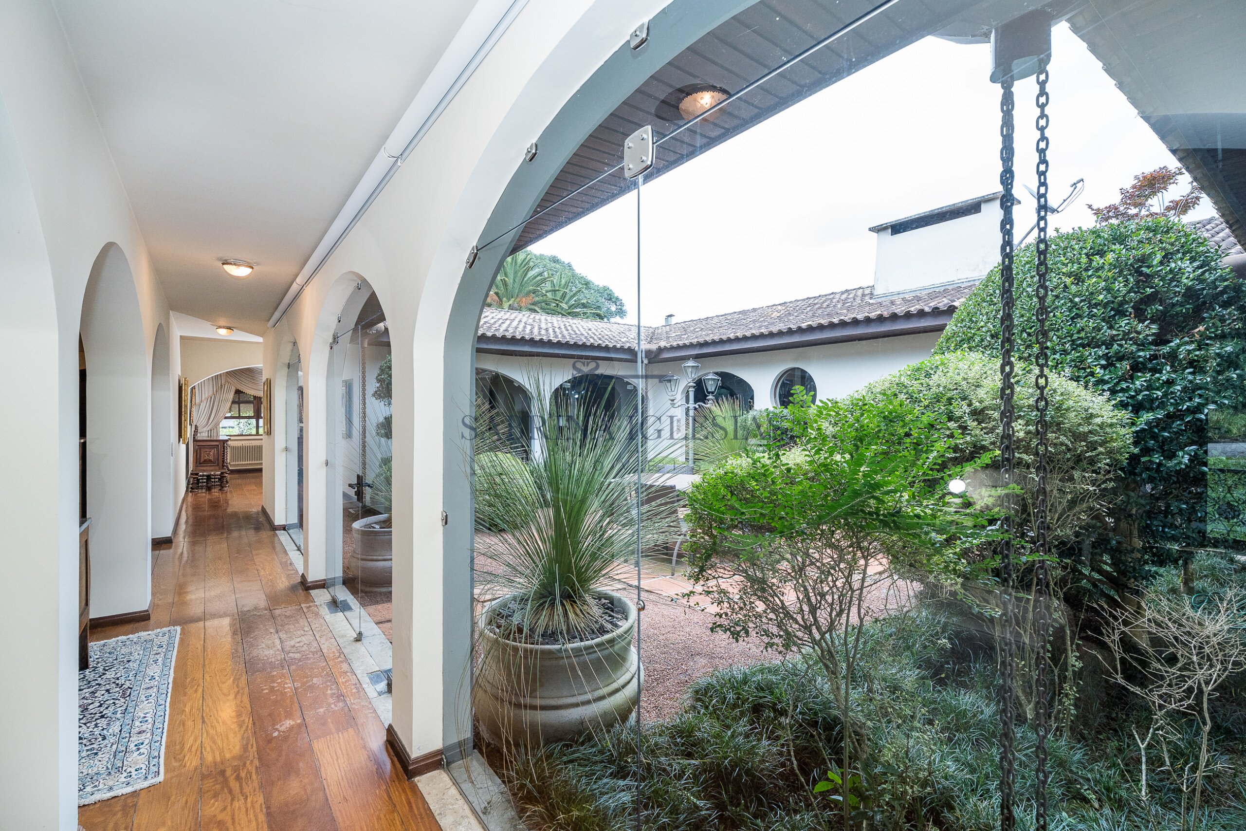 Casa térrea com 900 m² de área construída, implantada em terreno de 2.000 m², localizada em condomínio fechado no bairro Cascatinha, ao lado do Parque Barigui.