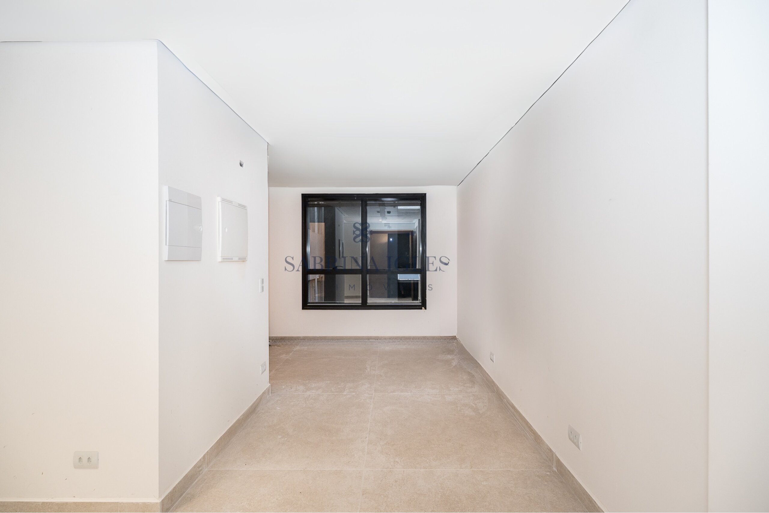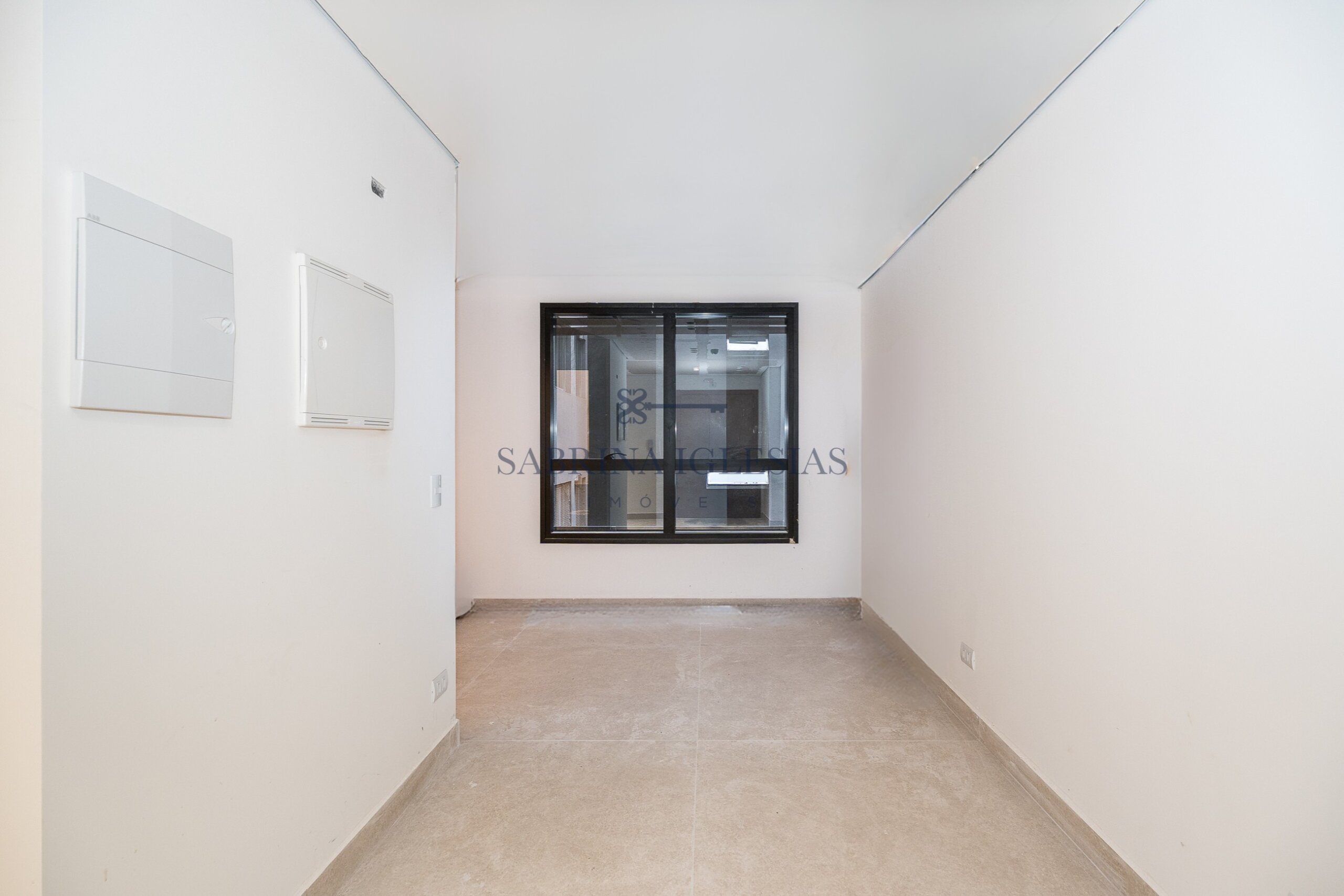 Com 22 m² privativos, esta unidade será entregue com porcelanato e forro de gesso com projeto de iluminação embutido, com previsão de conclusão para janeiro de 2026. O espaço conta com banheiro privativo, infraestrutura para ar-condicionado split e vão livre com amplas janelas, proporcionando excelente iluminação natural.