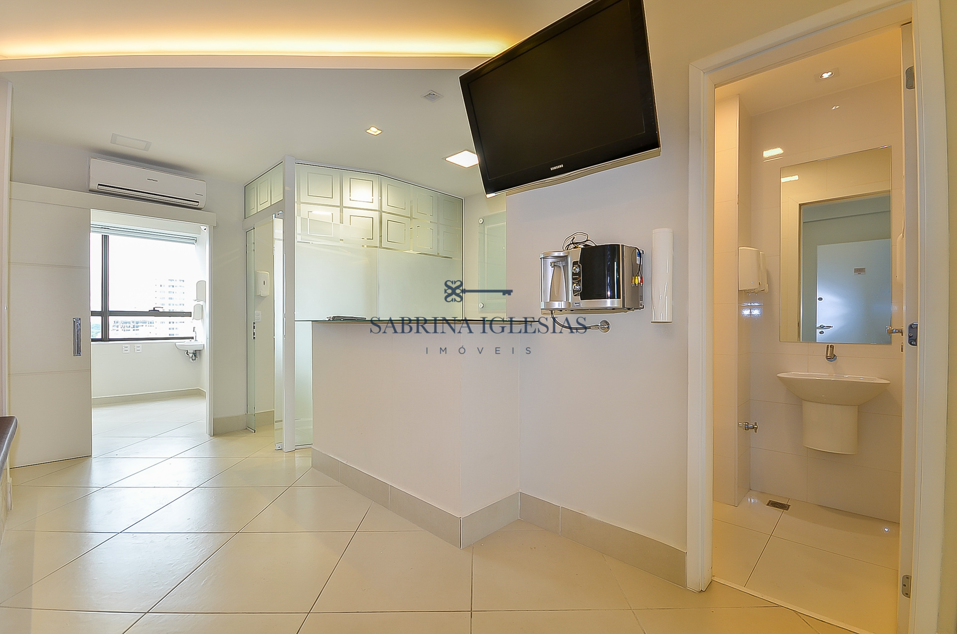 São duas salas comerciais integradas, totalizando 86m² de área privativa, sendo uma delas dividido em dois ambientes , totalizando 3 salas, proporcionando um ambiente funcional e bem distribuído. O espaço conta ainda com dois banheiros, duas sacadas e 1 vaga de estacionamento.