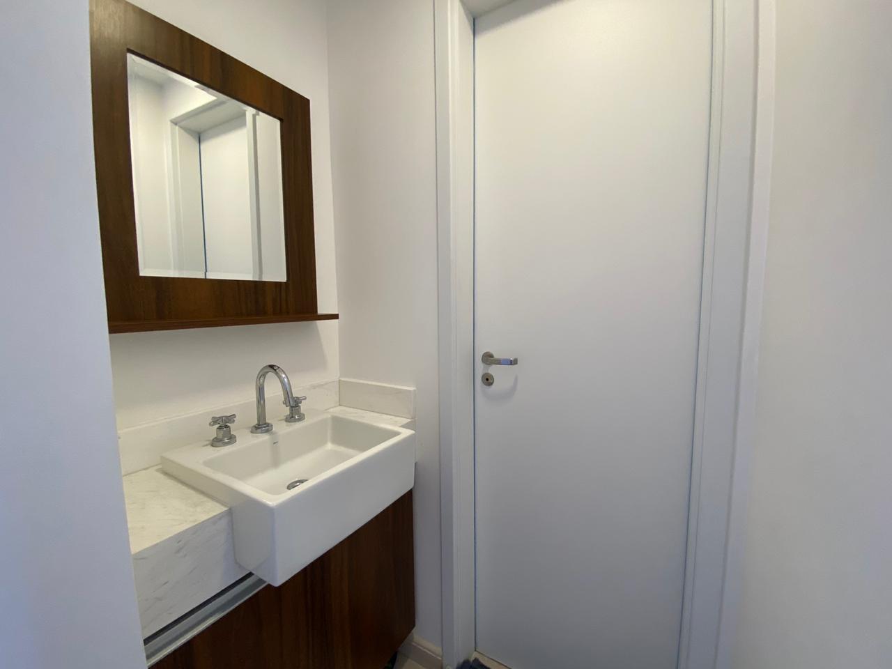 O studio está pronto para morar. Possui cozinha planejada com armários, cooktop e bancada. O banheiro conta com bancada em mármore e cuba de semi-encaixe. O aquecimento de água é feito por sistema de caldeira, com hidrômetro individual. A lavanderia possui tanque. O condomínio oferece portaria 24h e serviço de limpeza para as áreas comuns.
