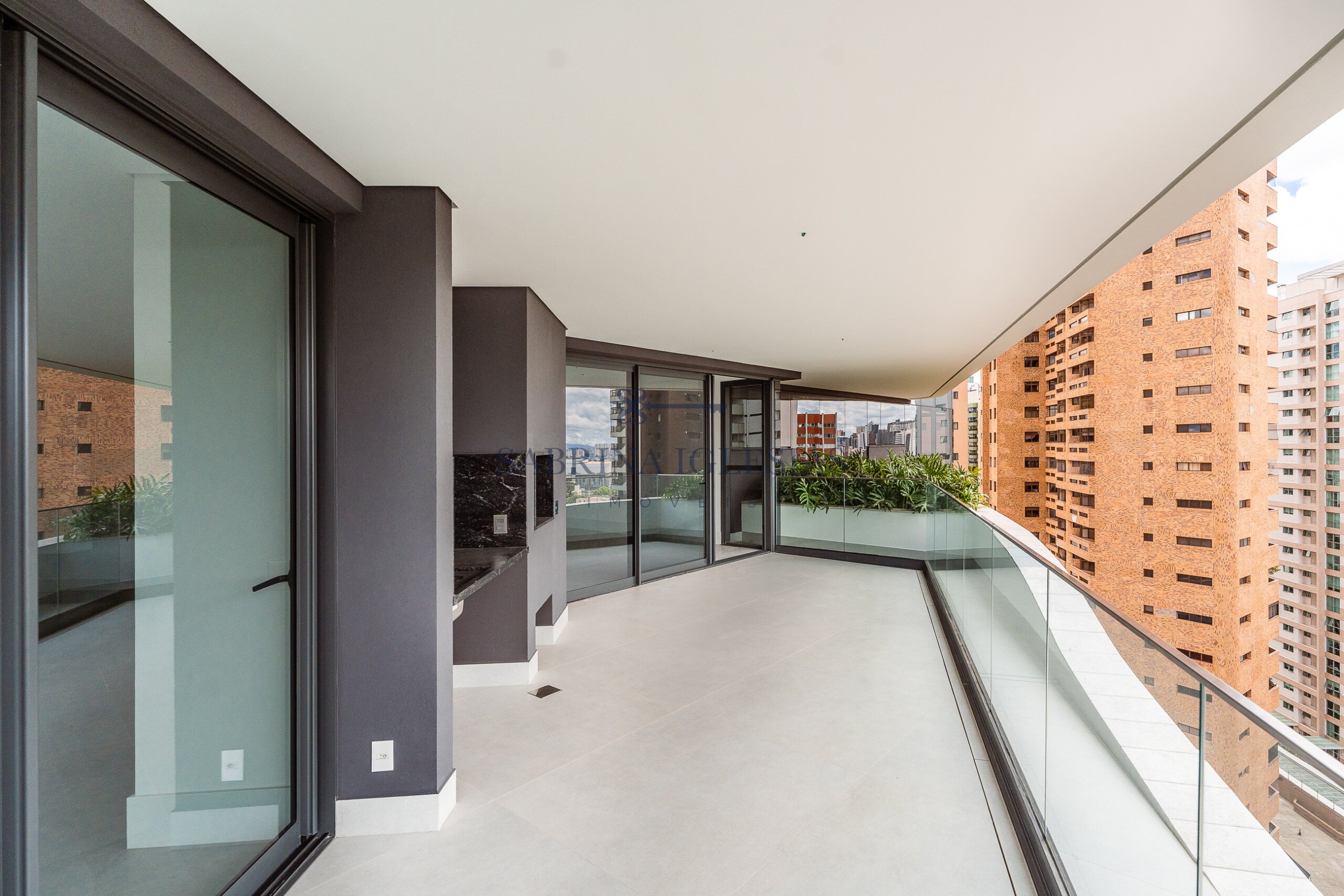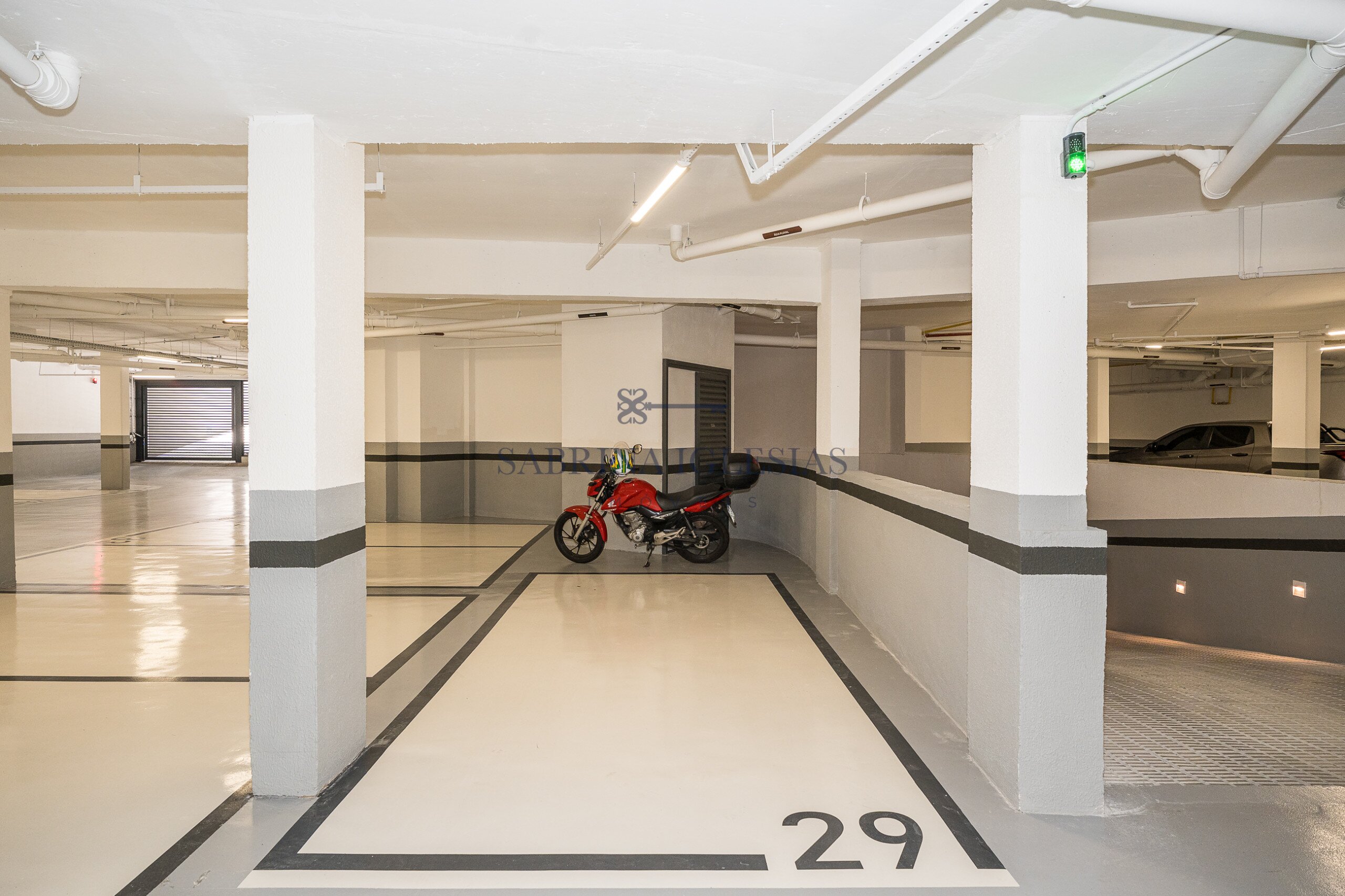 A unidade oferece vista privilegiada da cidade e da Serra do Mar, além de 4 vagas de garagem e box privativo.