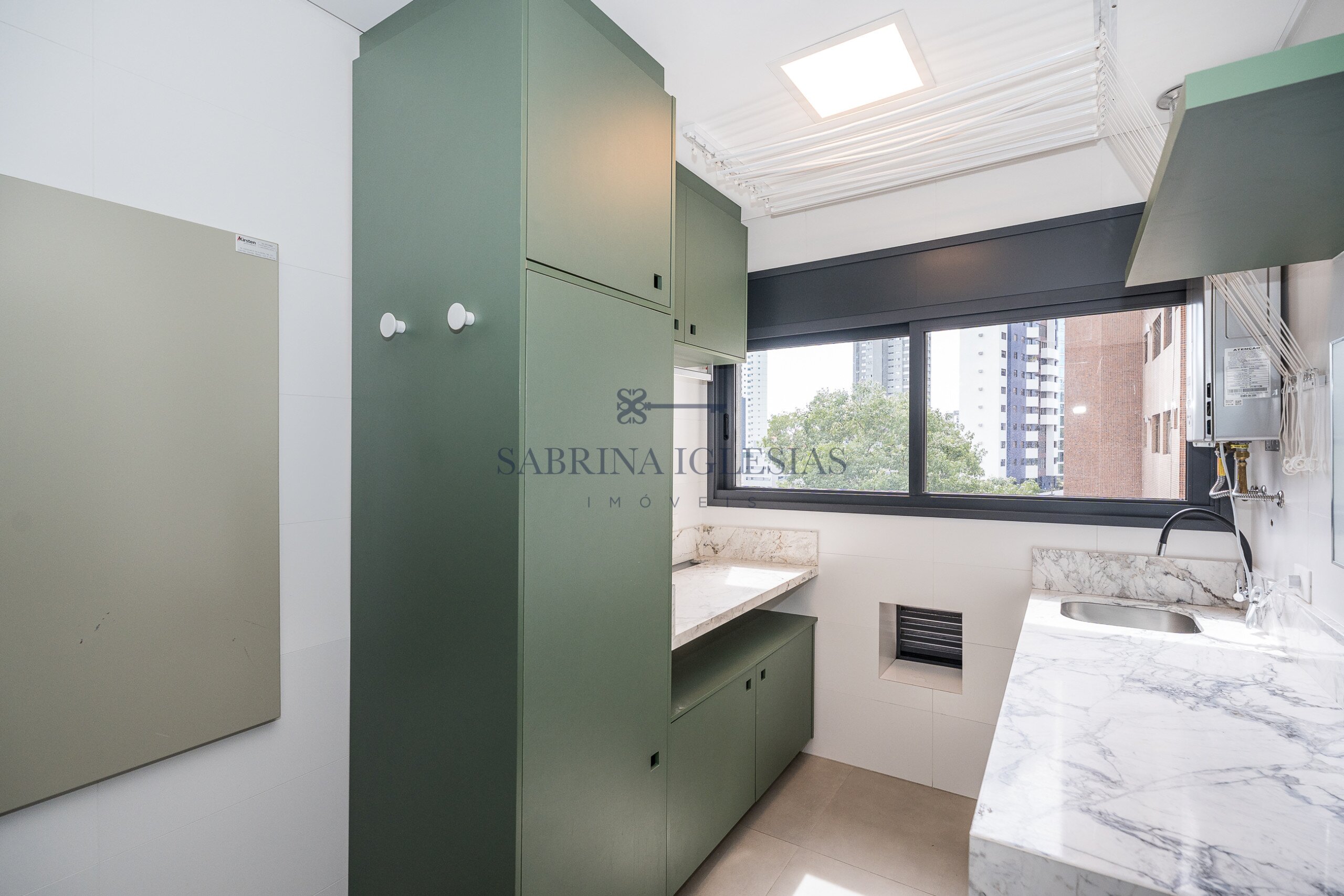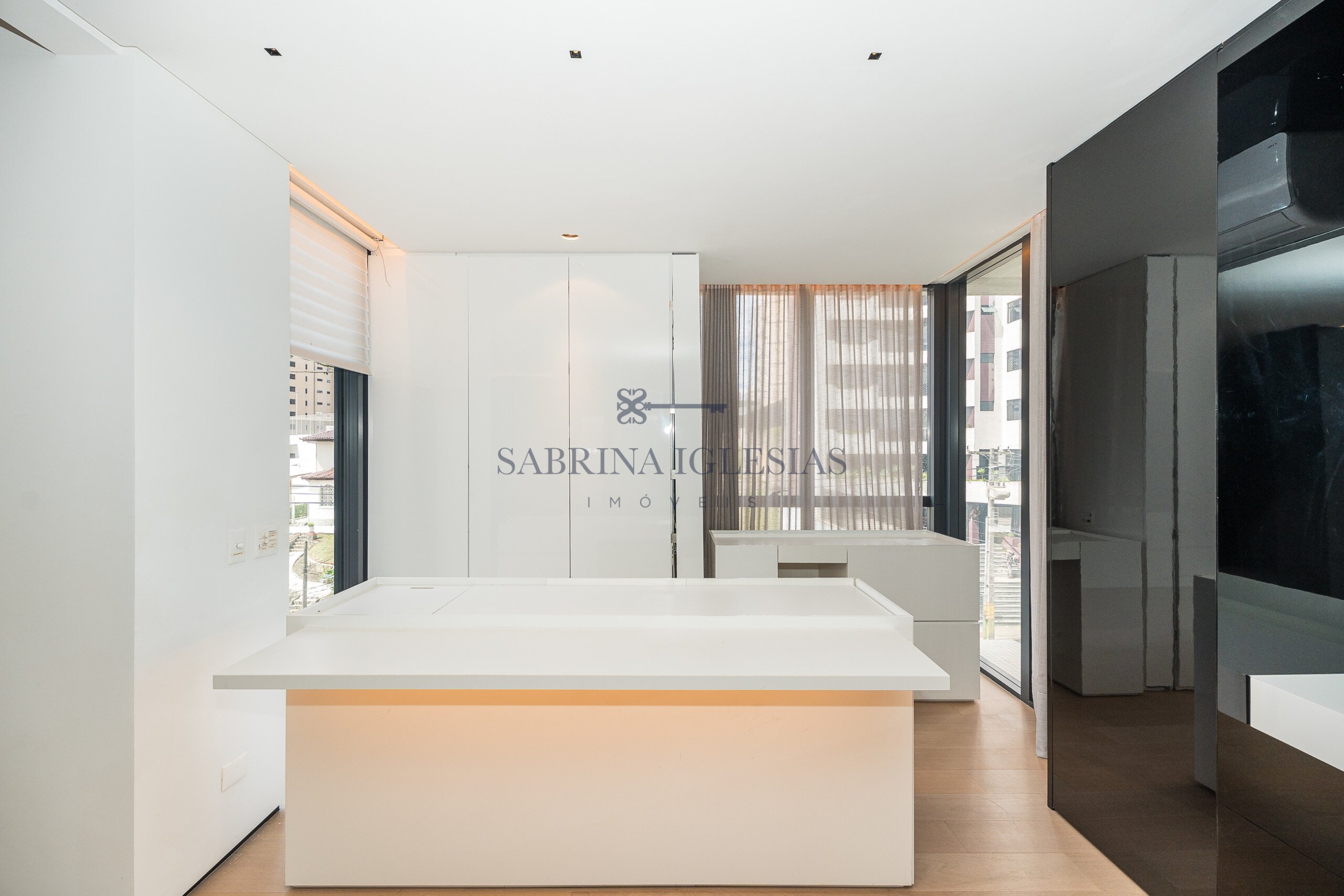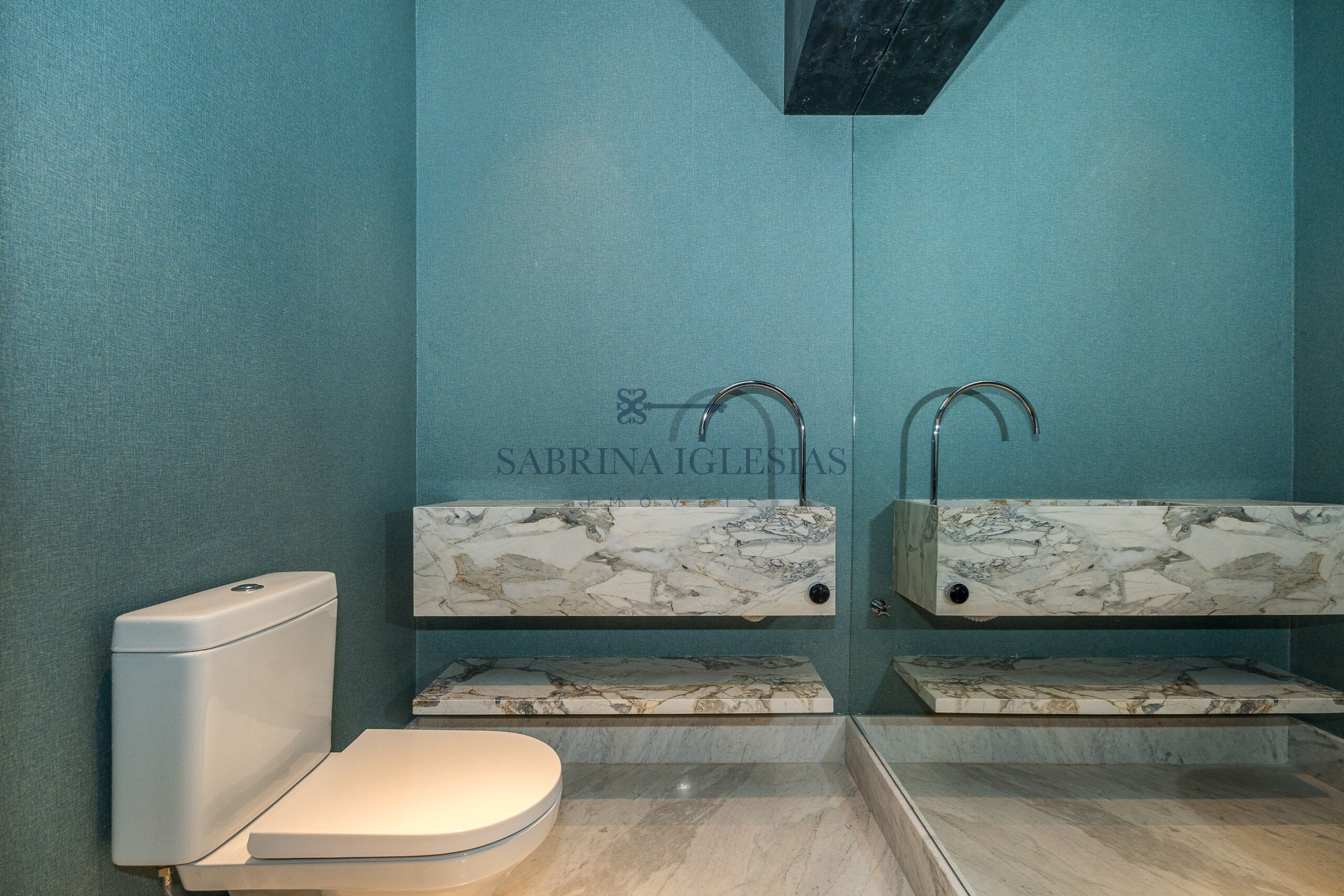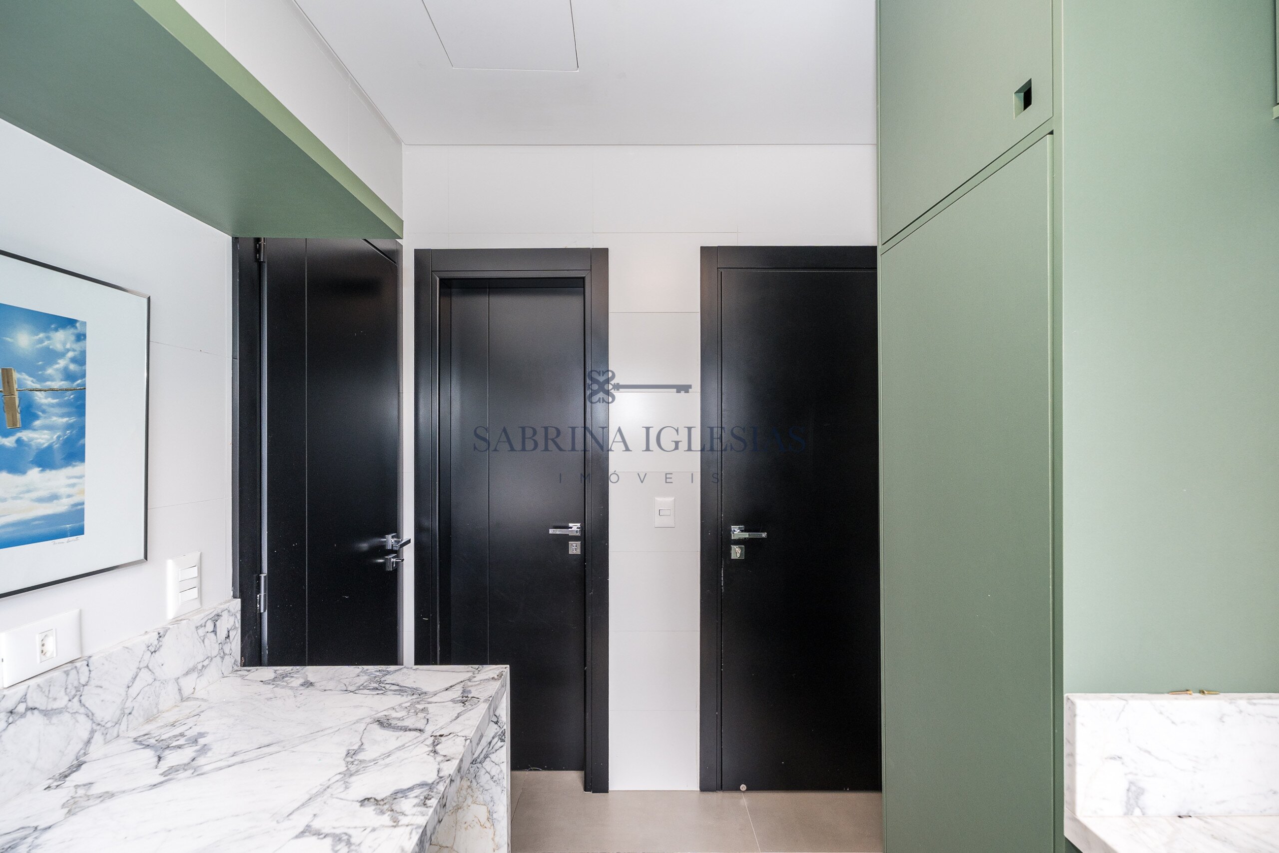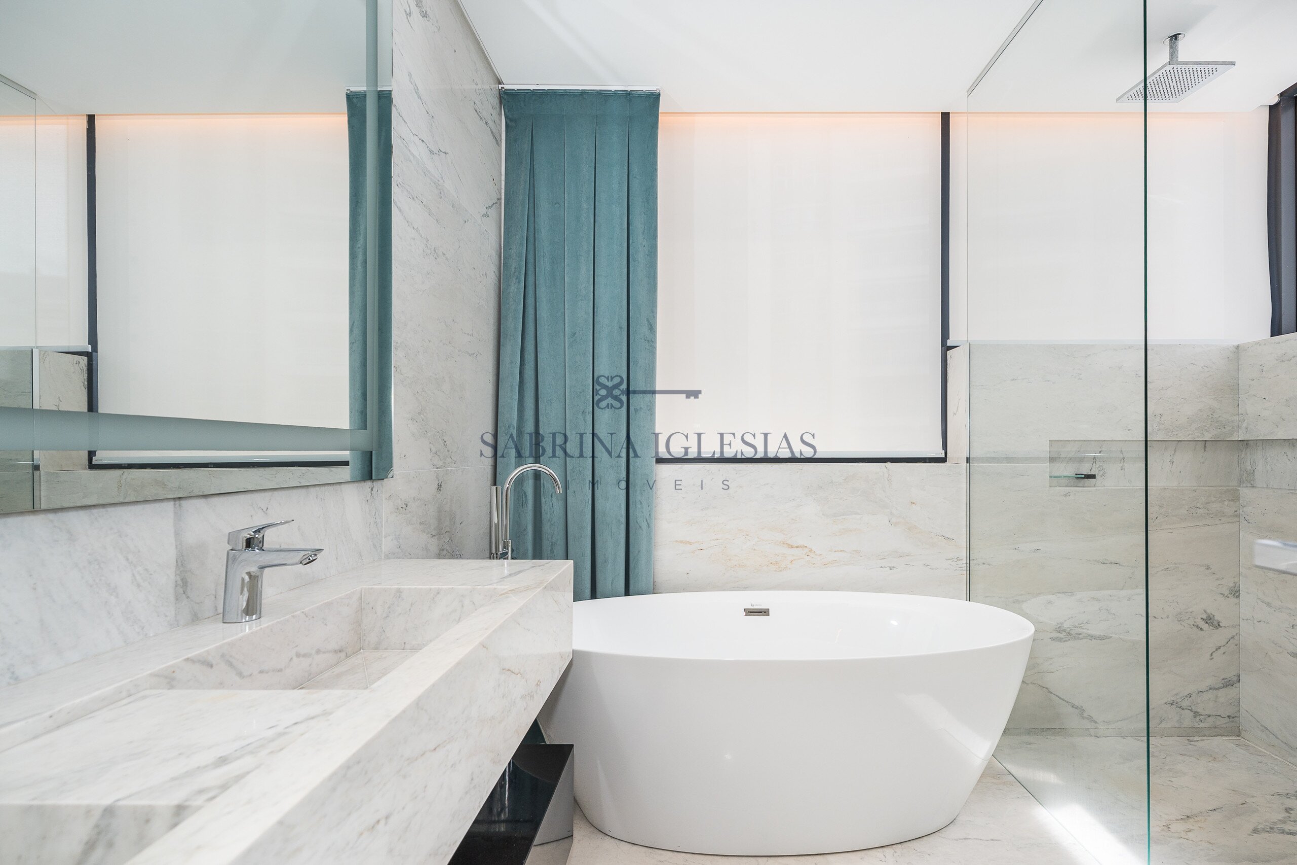 O apartamento tem 240m2, são 3 suites. A suite master com banheira de imersão e duas cubas.