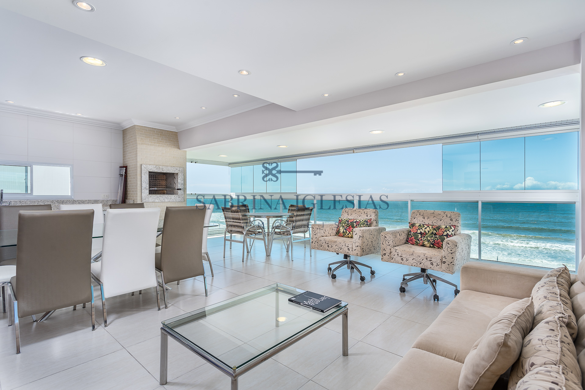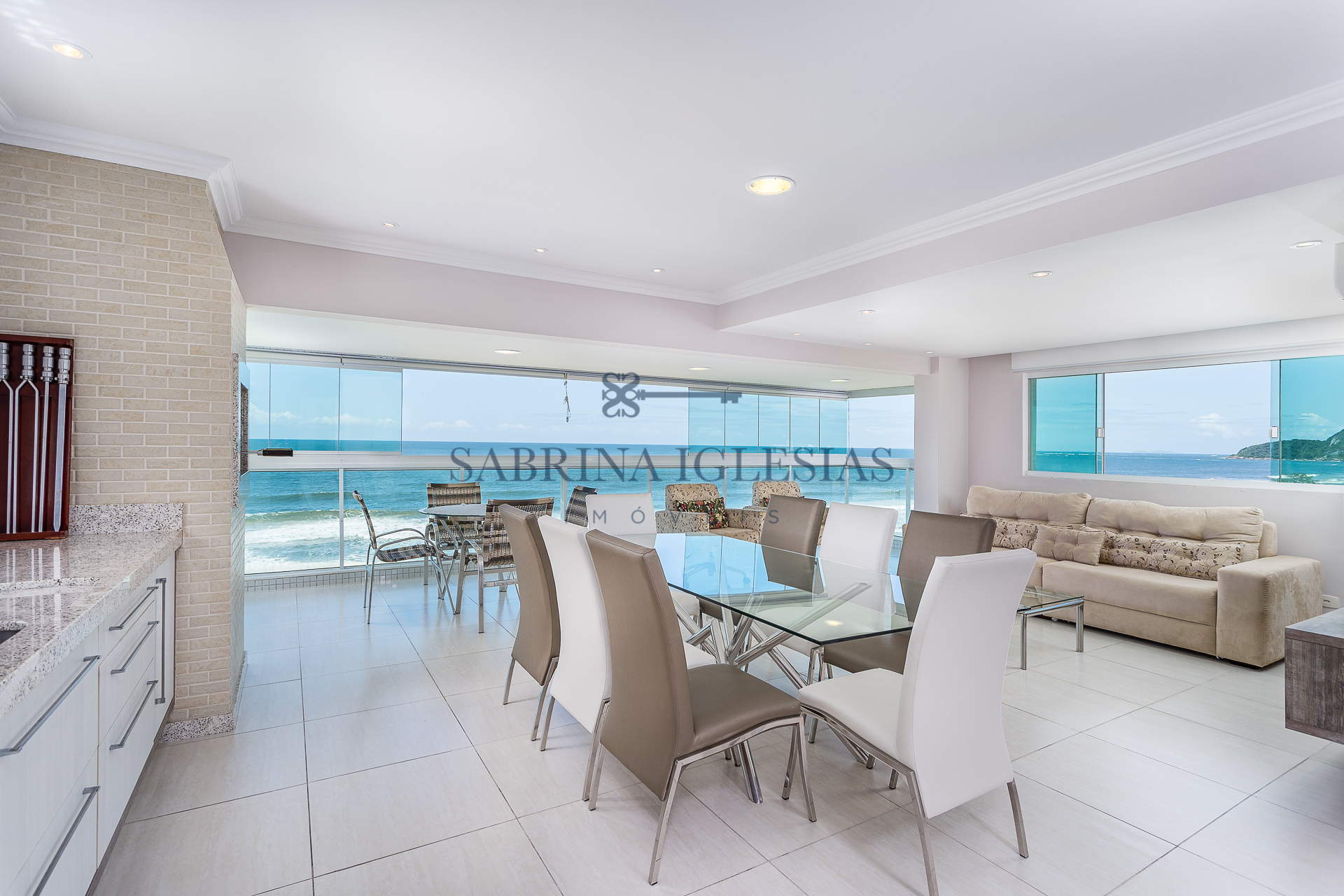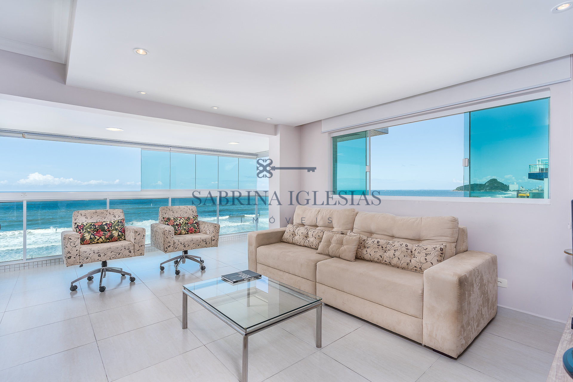 4 suítes todas com vista para o mar, lavabo e estar íntimo.