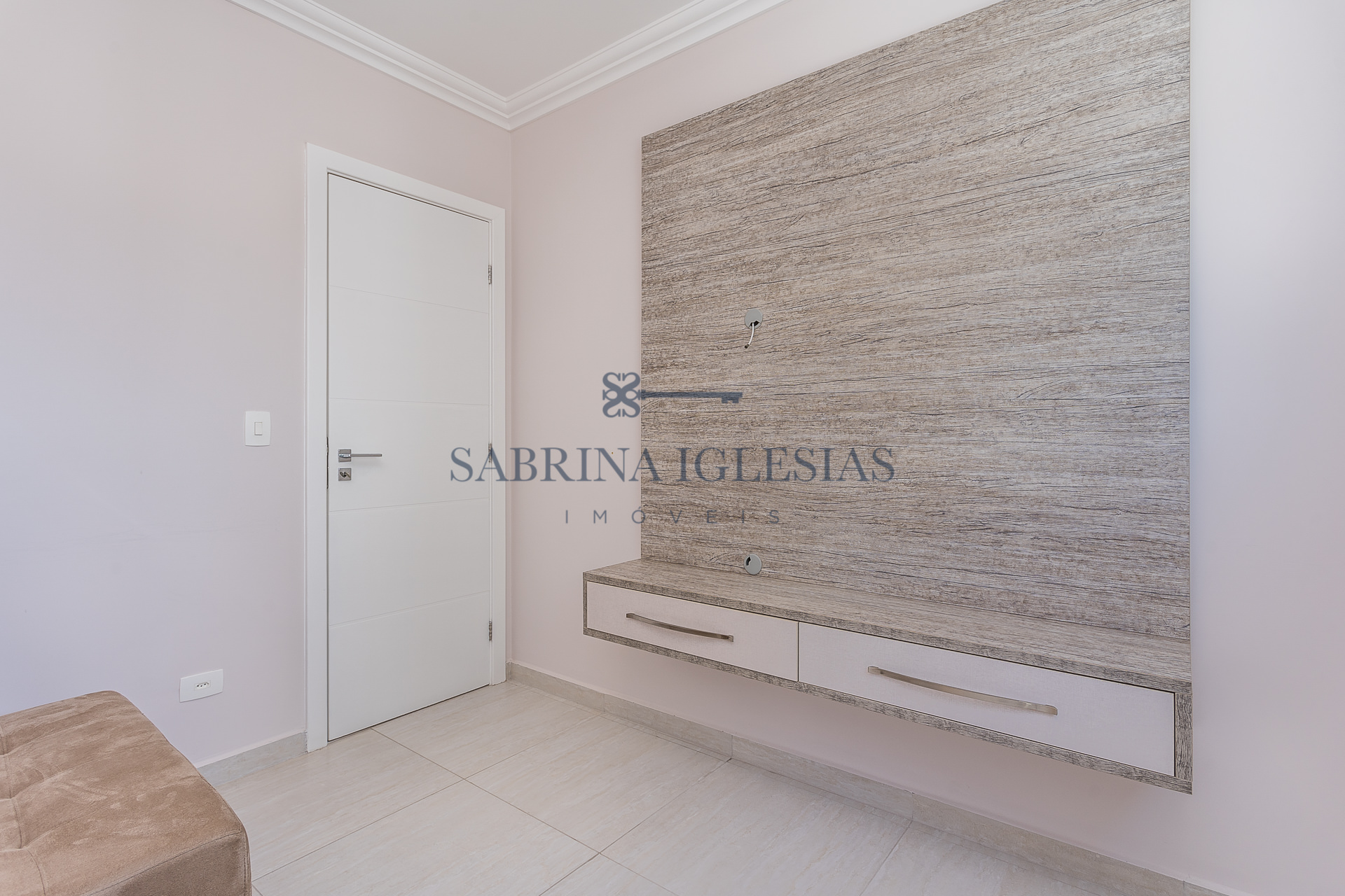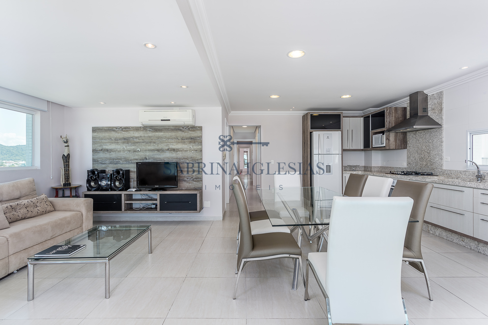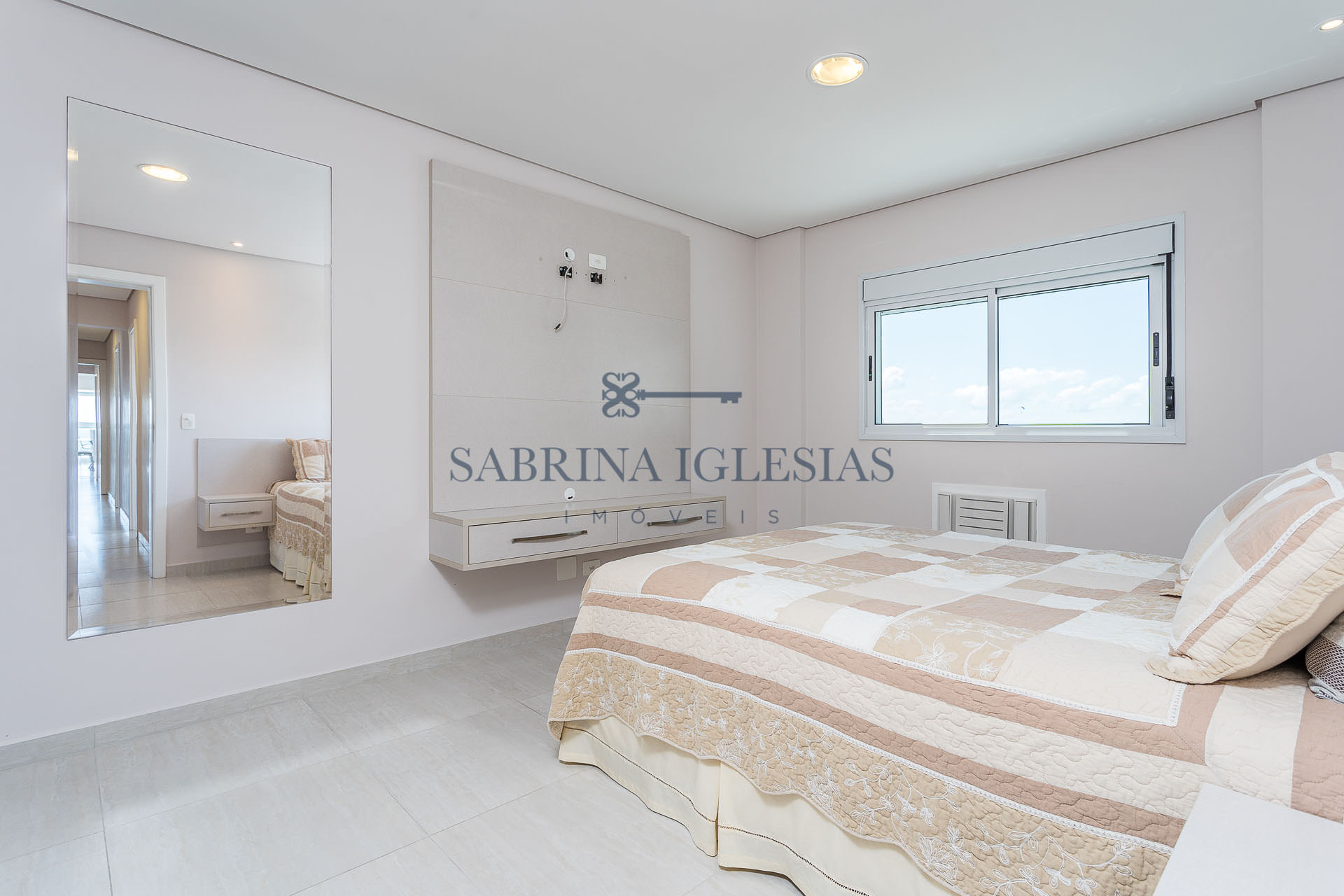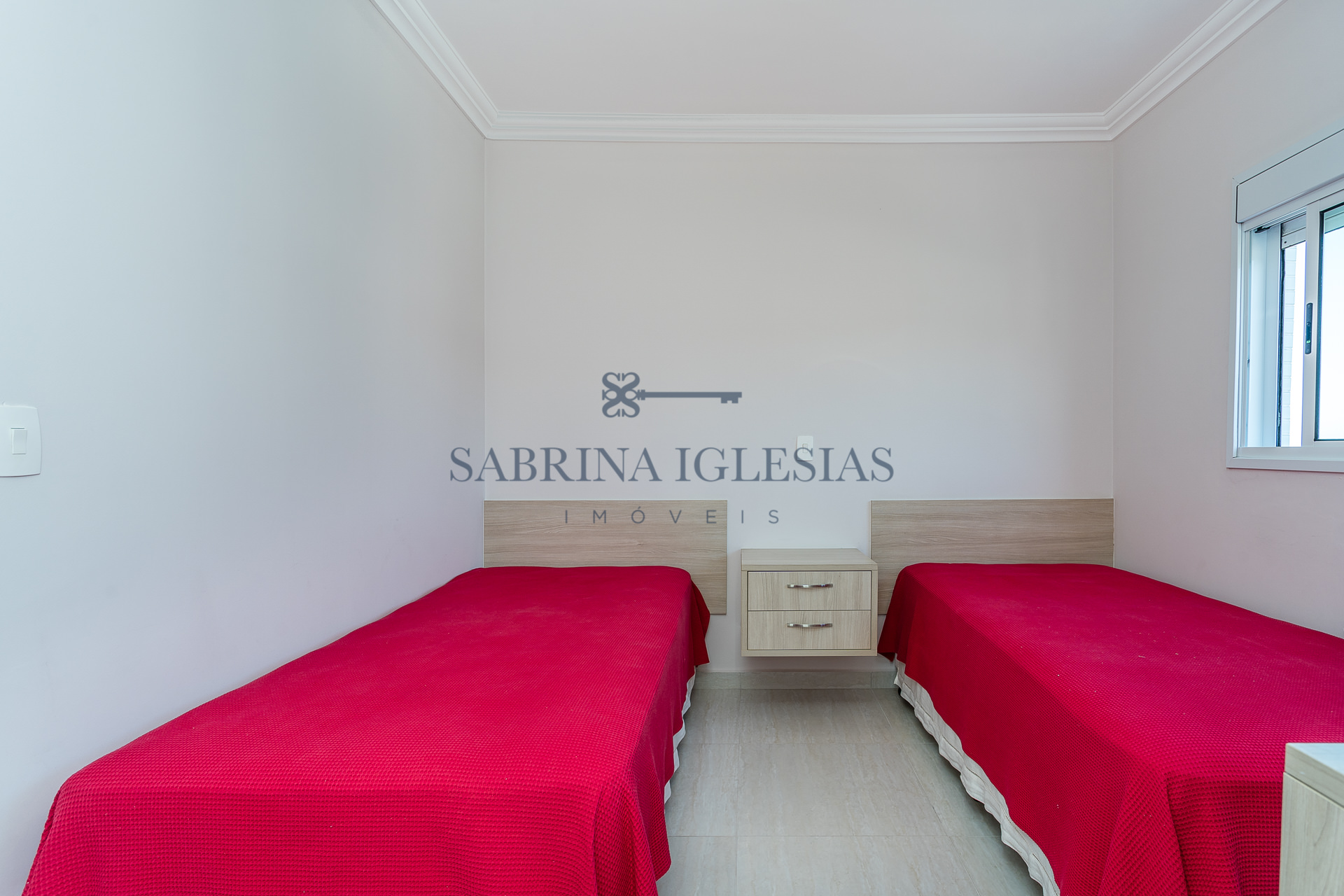 Teto rebaixado com iluminação embutida, armários na cozinha, dormitórios e banheiros.
