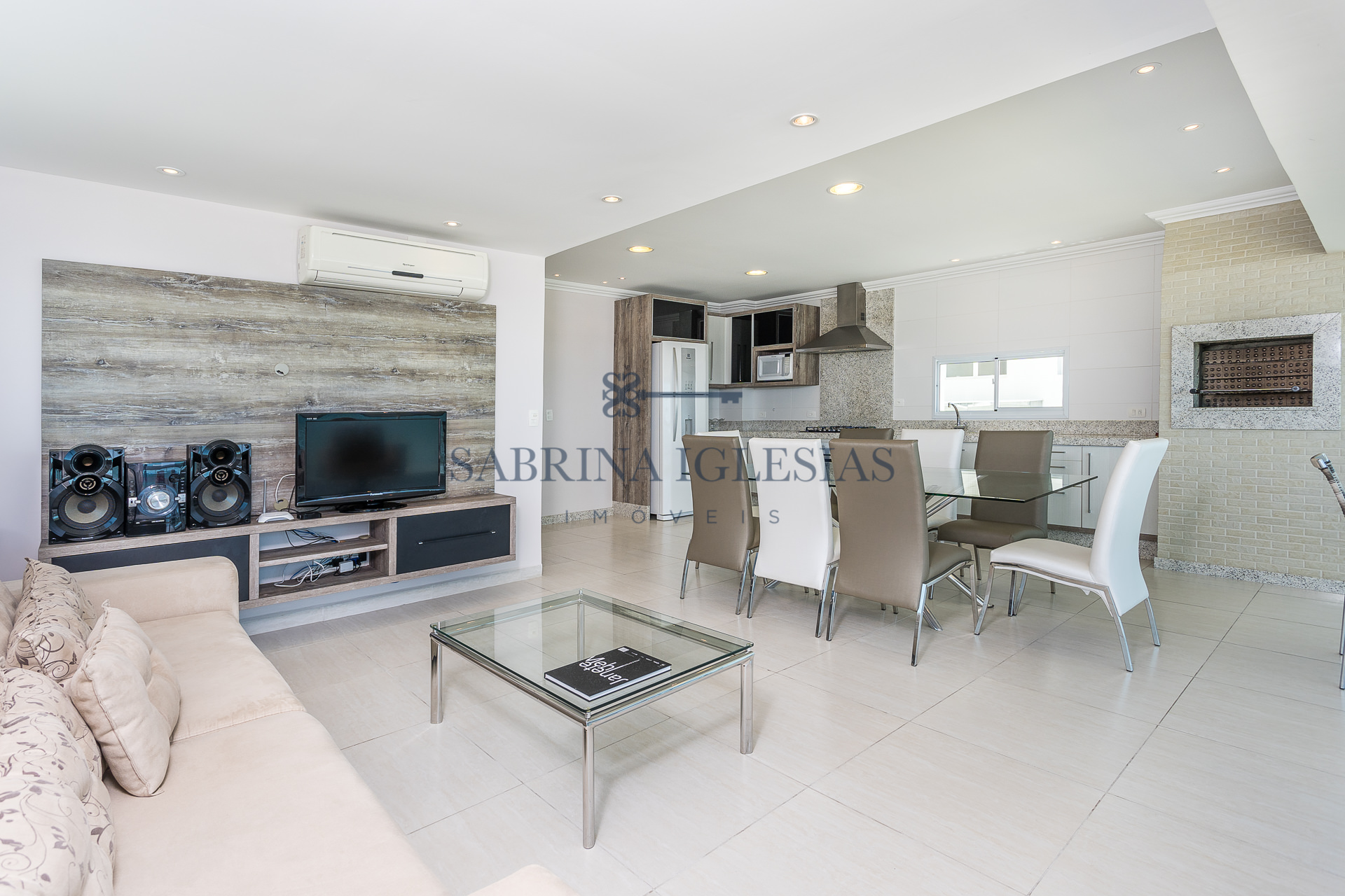 Um apartamento por andar, planta muito boa para casa de férias, espaços amplos e integrados a sala de estar, jantar e cozinha gourmet completa com churrasqueira a carvão.