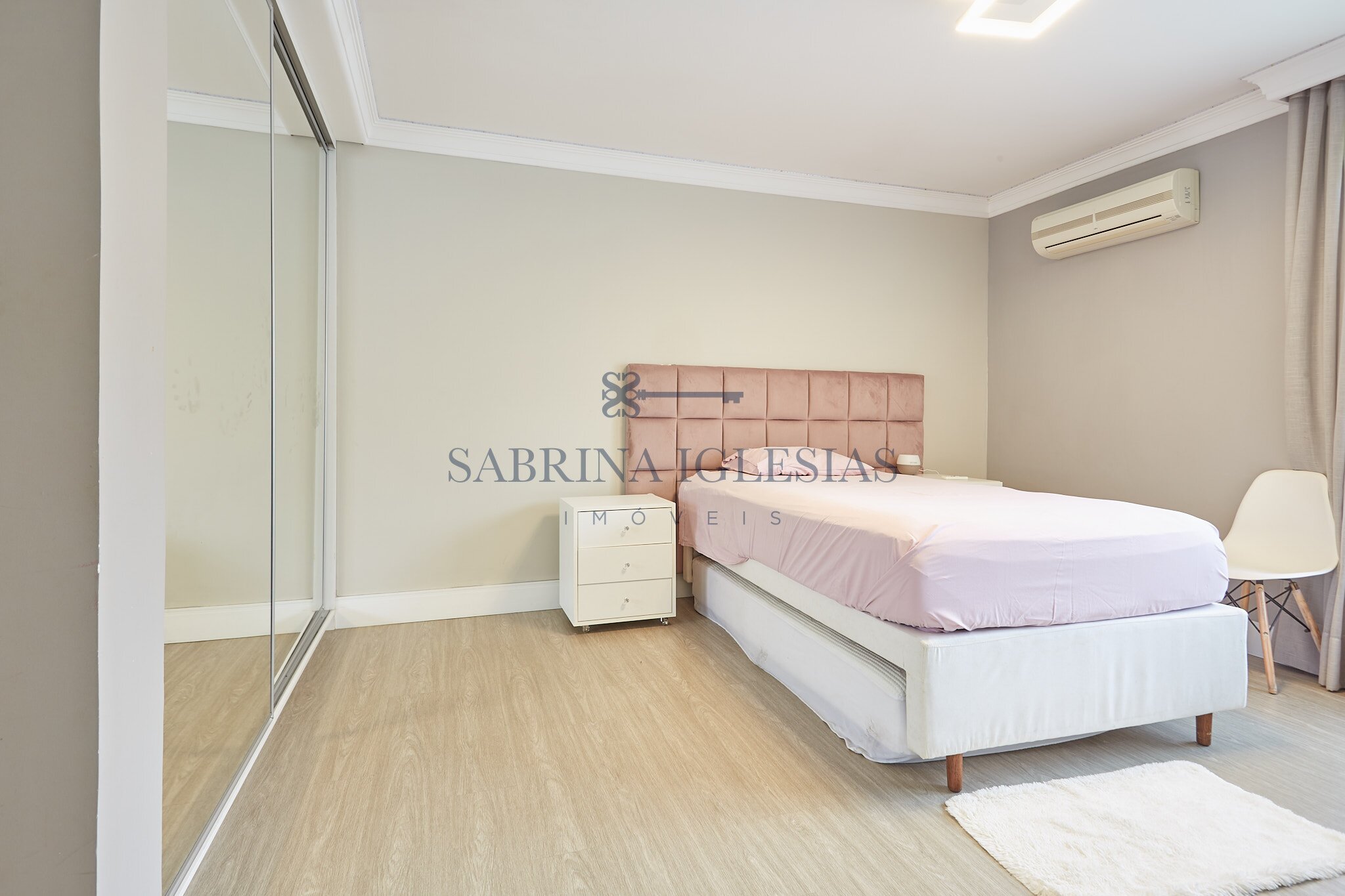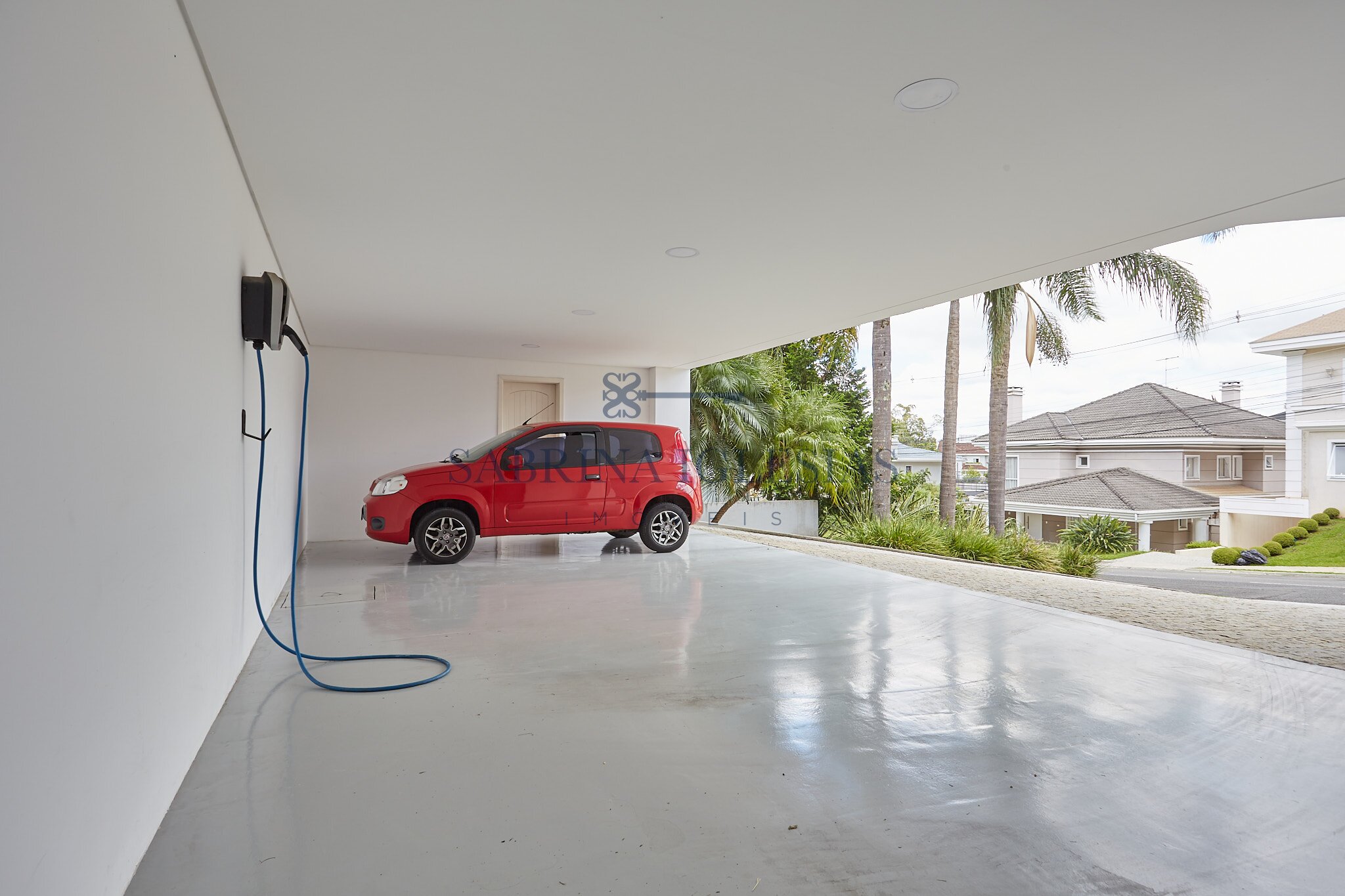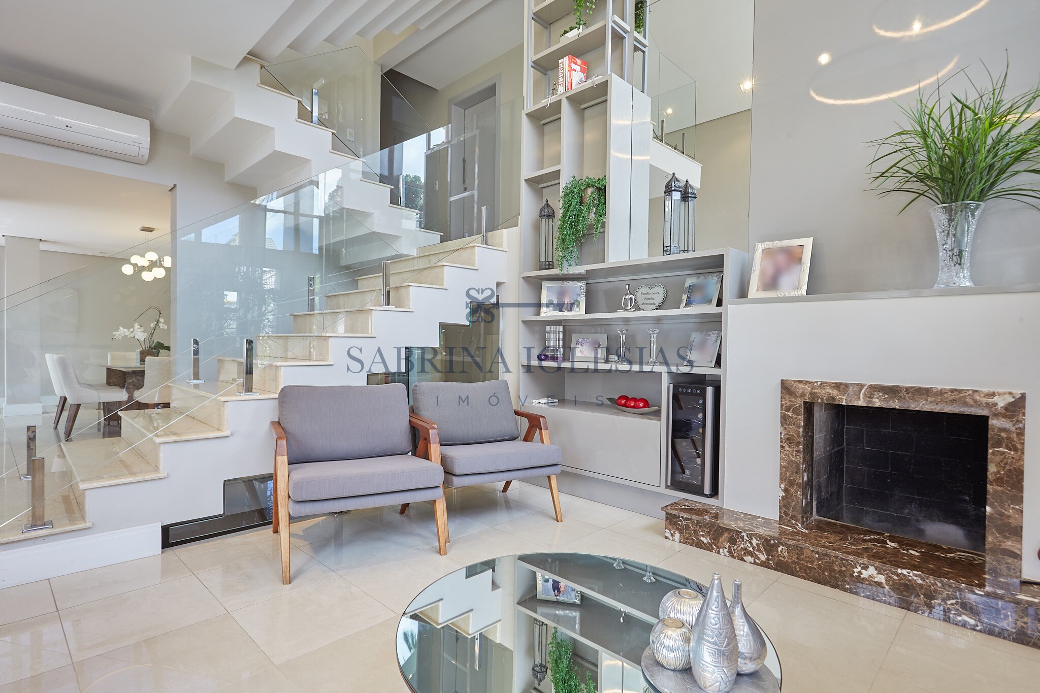 Entre os diferenciais, a residência possui ar-condicionado e sistema de calefação em todos os ambientes, aquecimento de água por energia solar e fechadura eletrônica na porta da garagem.