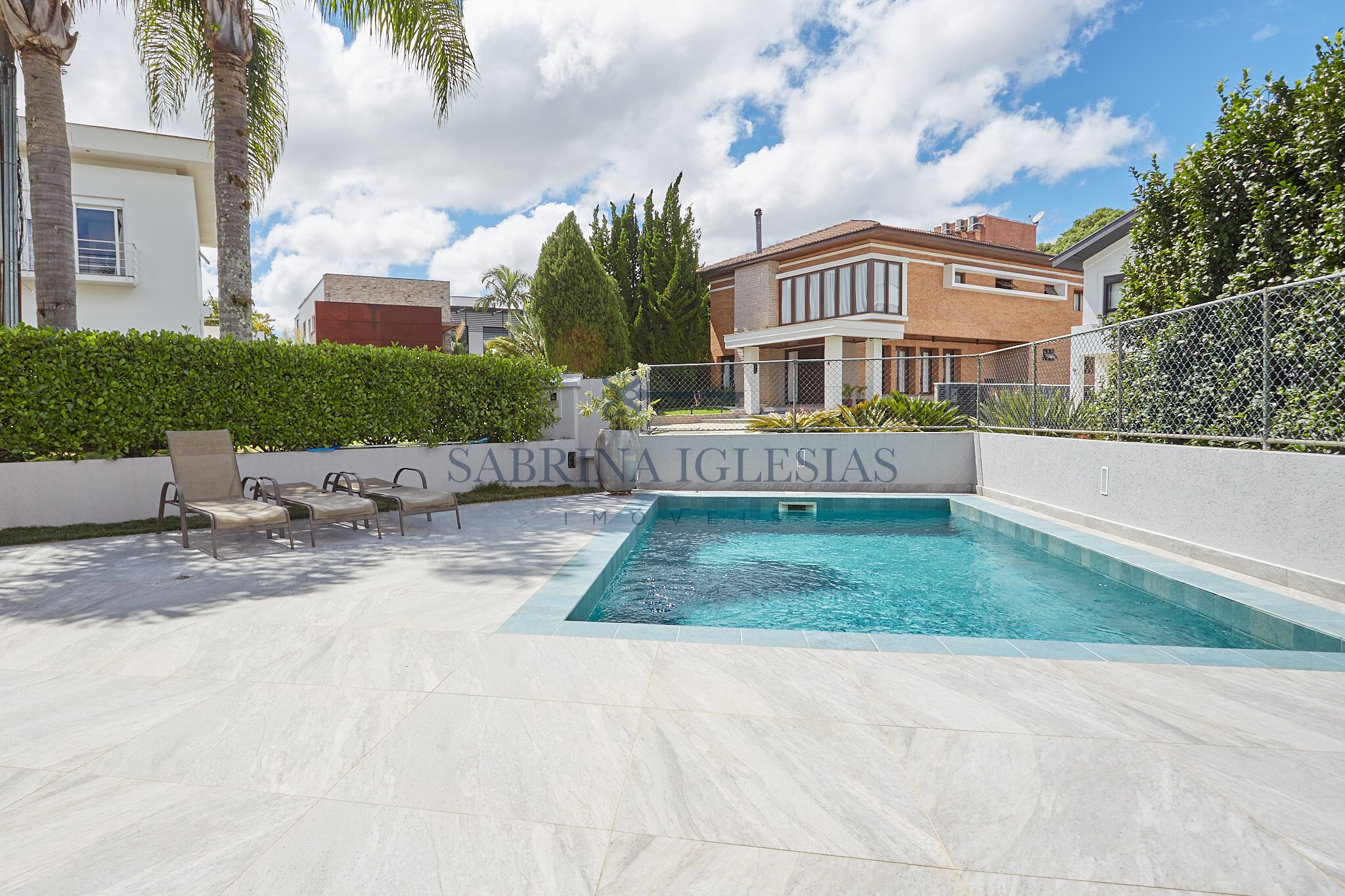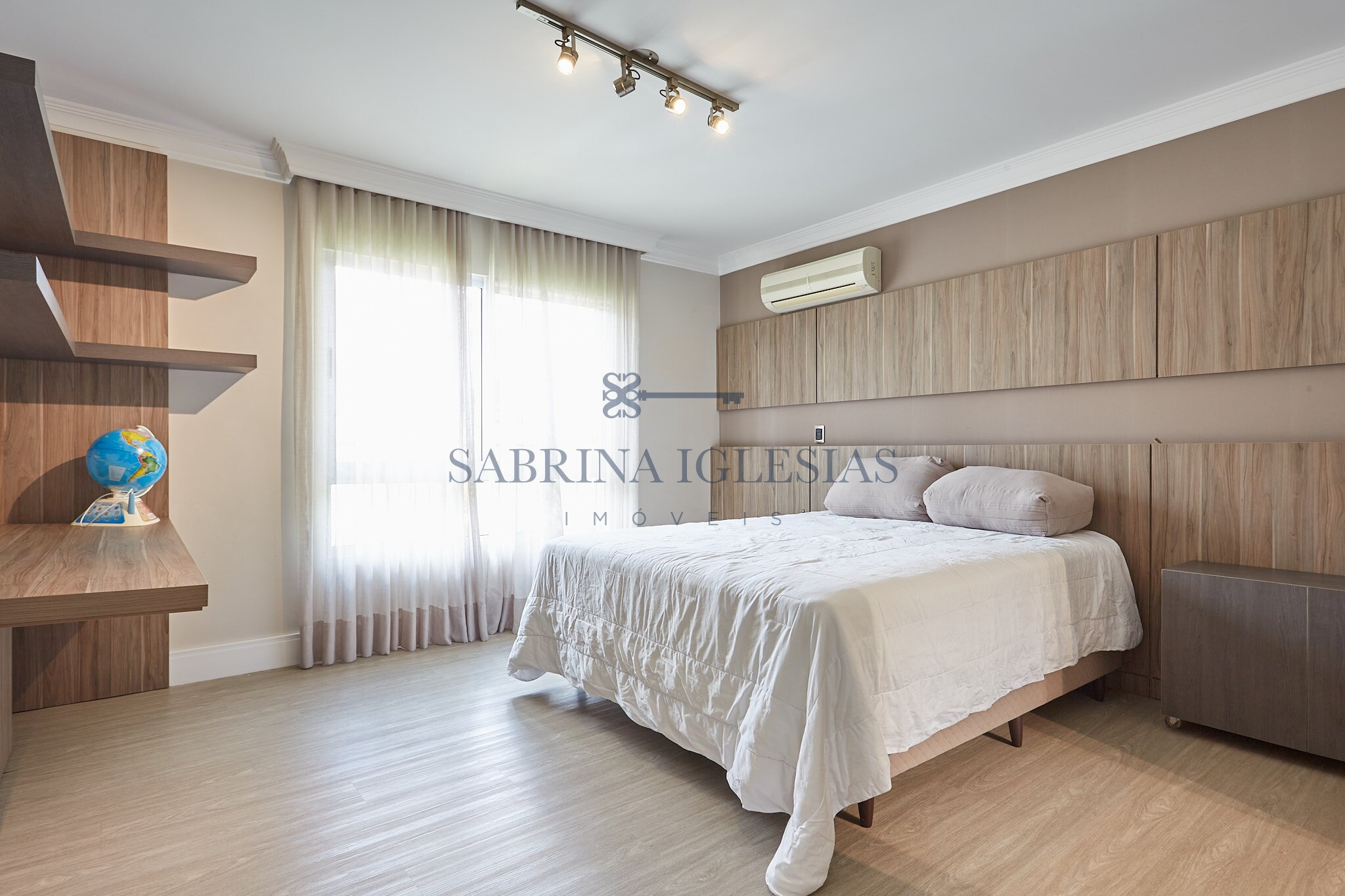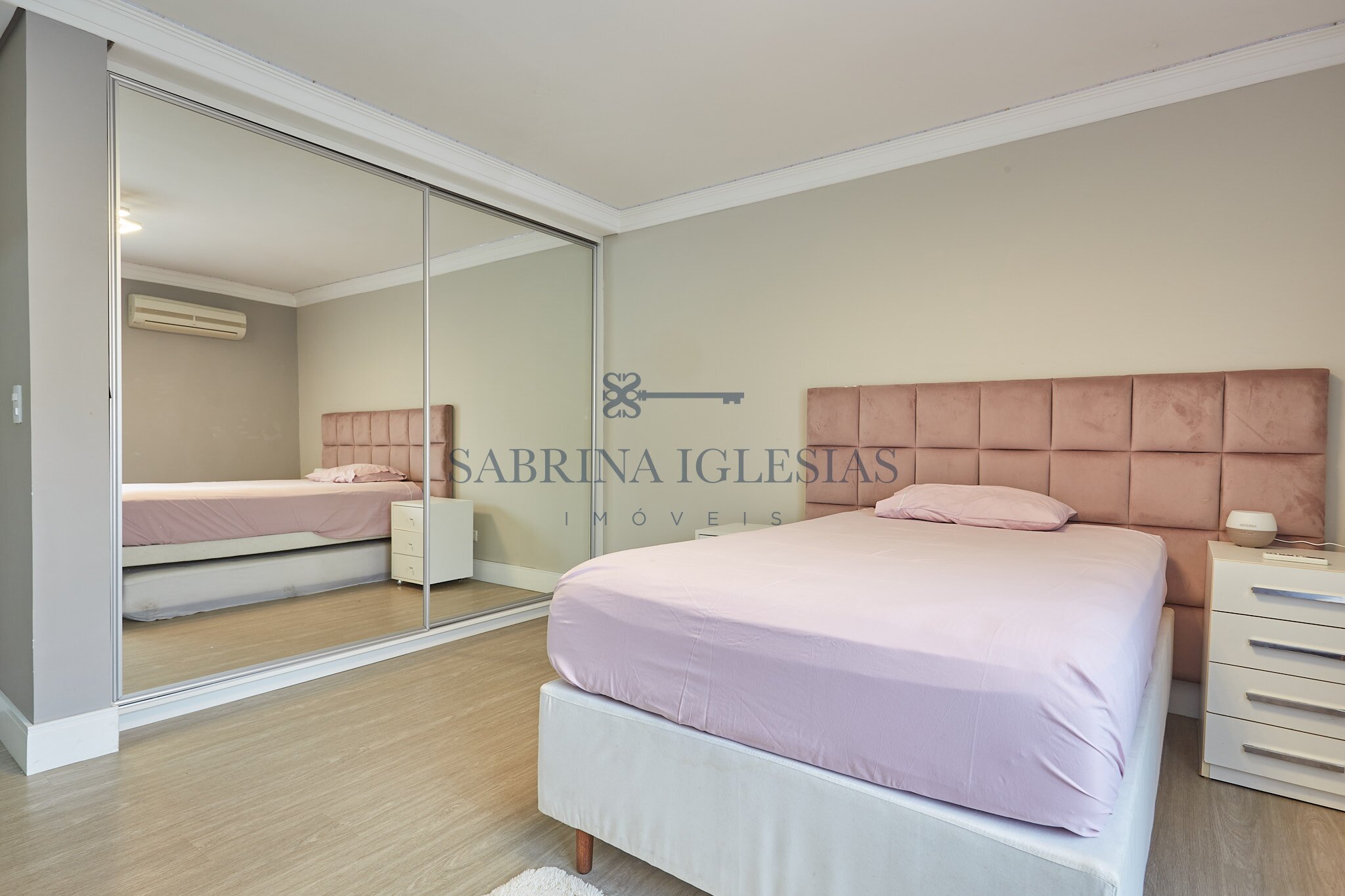 Entre os diferenciais, a residência possui ar-condicionado e sistema de calefação em todos os ambientes, aquecimento de água por energia solar e fechadura eletrônica na porta da garagem.