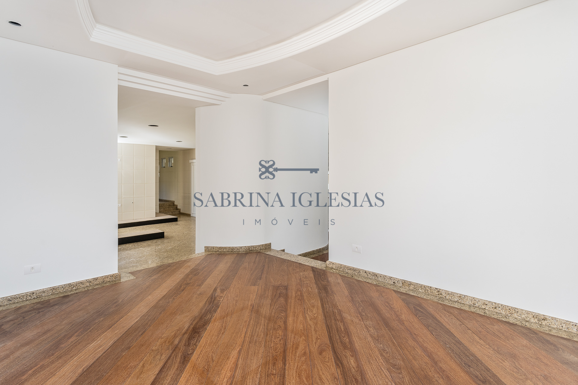 Piso em madeira e granito.