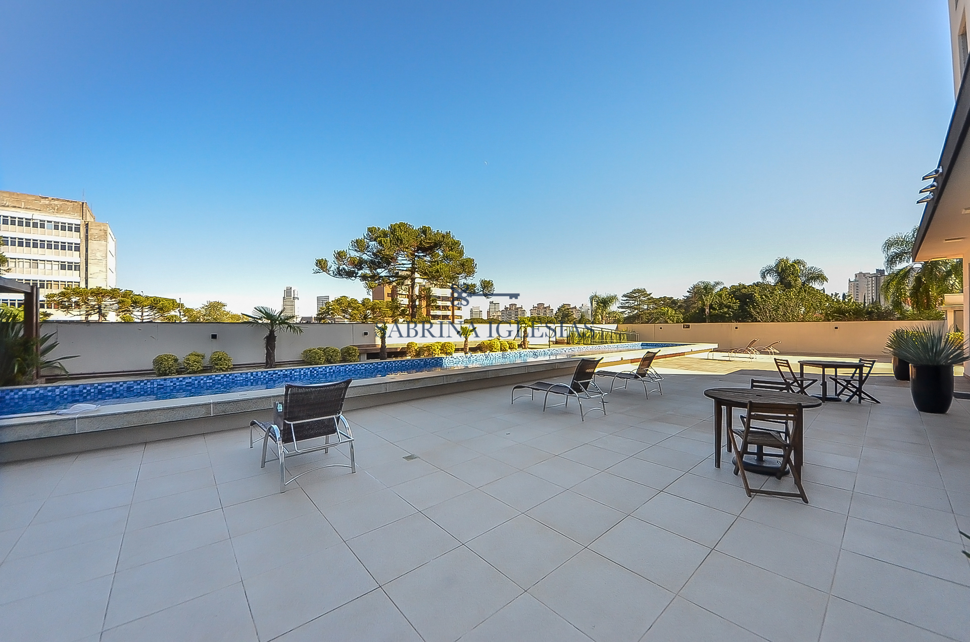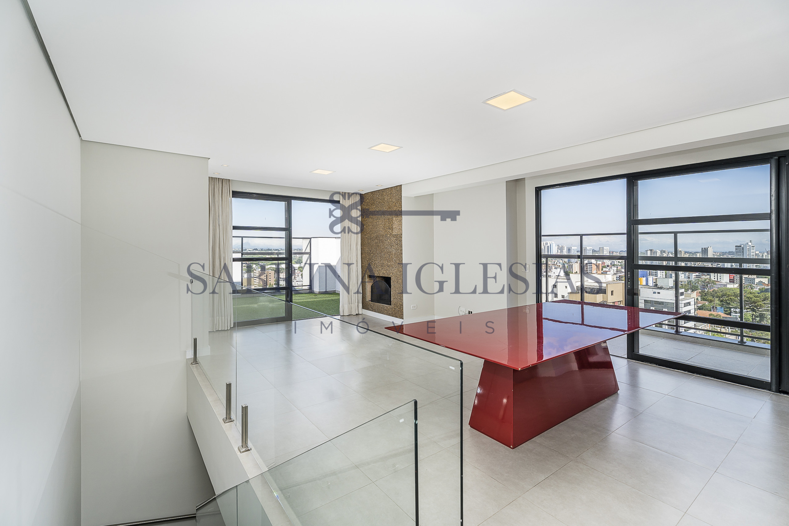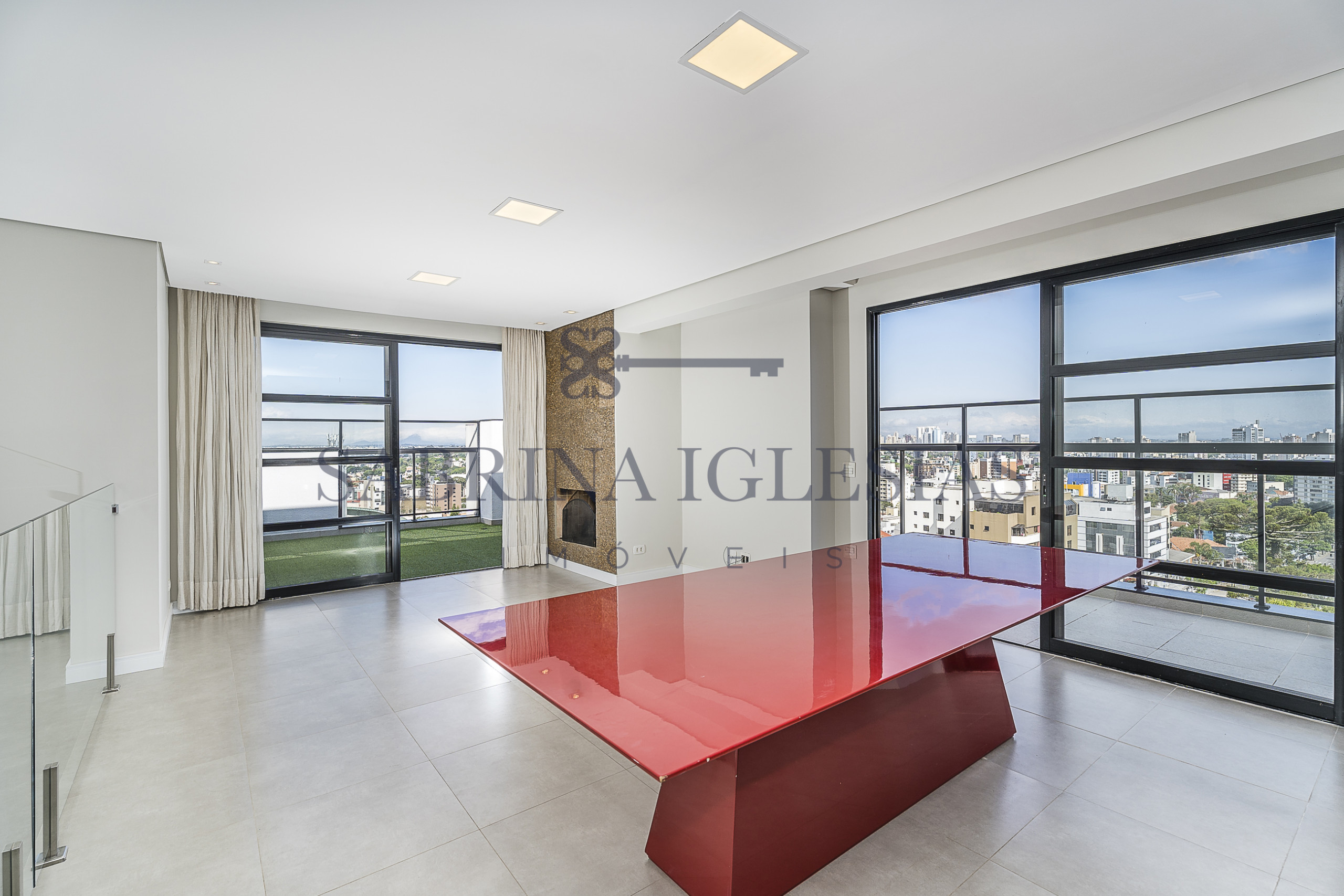 A vista é privilegiada, o terraço contorna a sala de jantar e estar com um lindo show do nascer do sol.