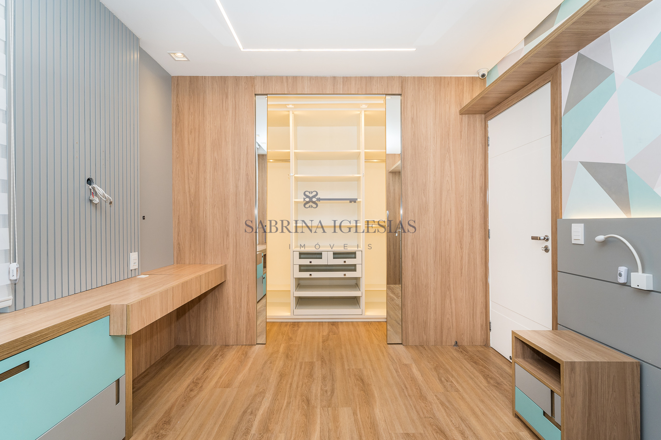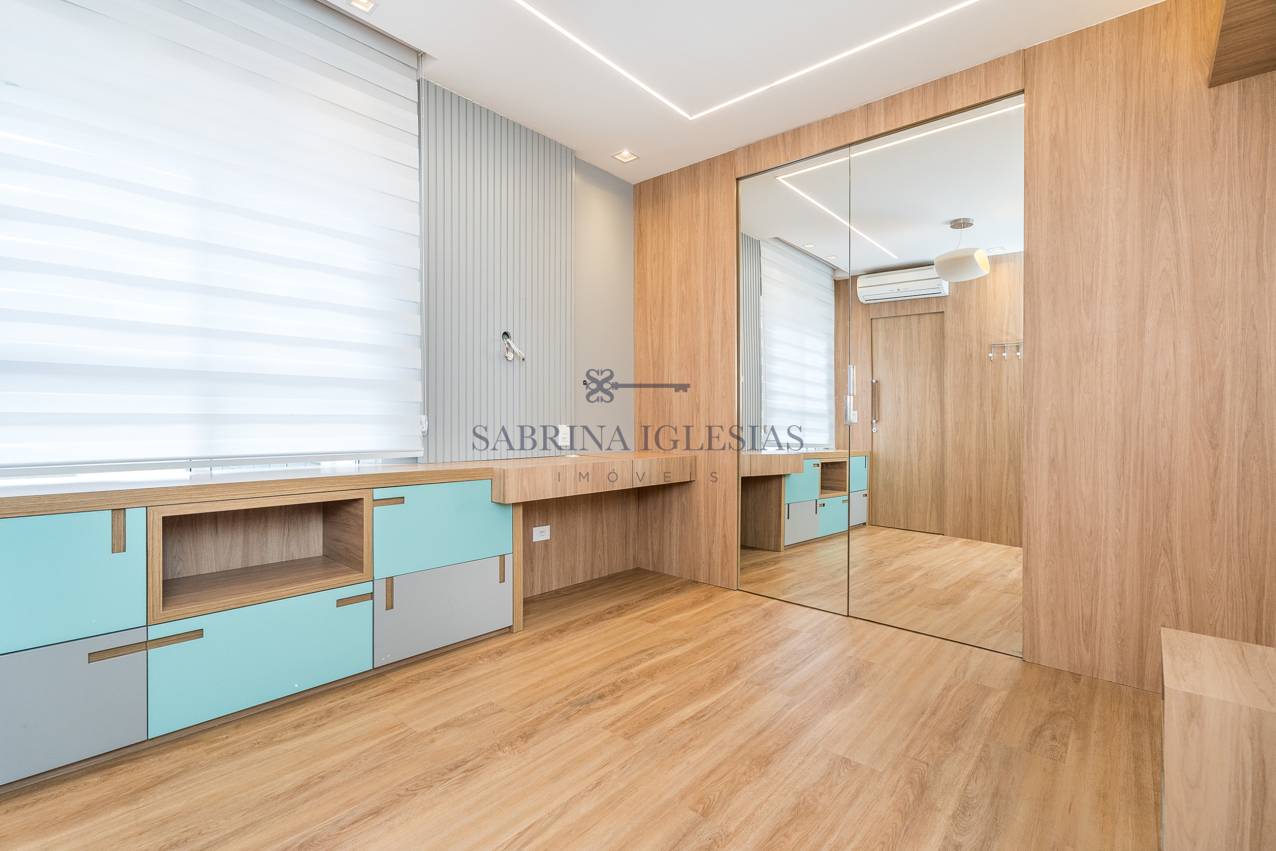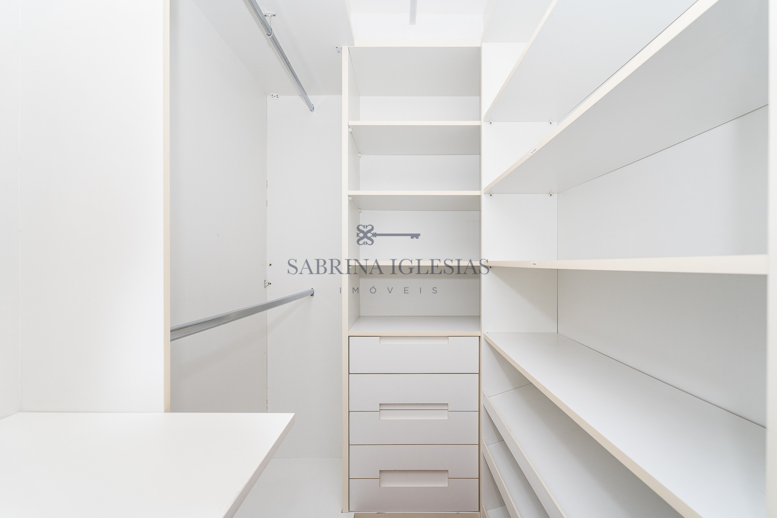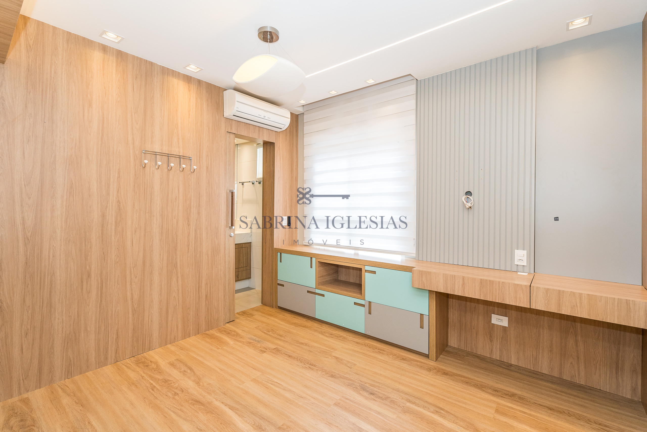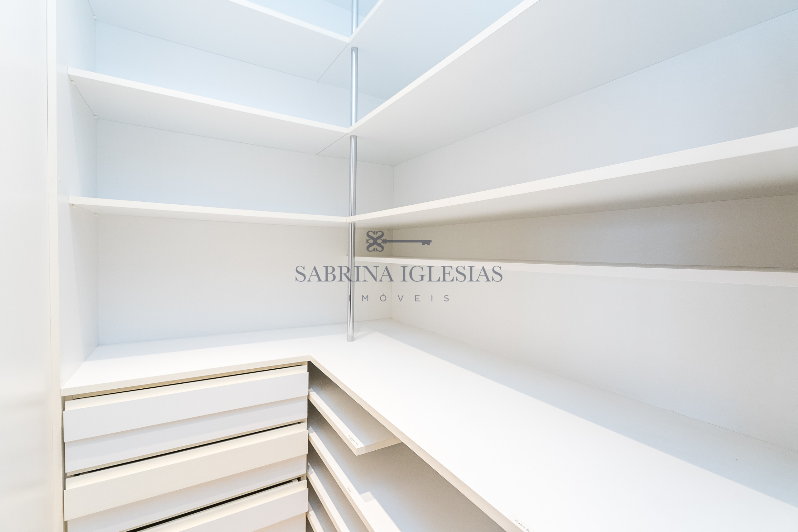 São três suítes, todos os ambientes climatizados, cortinas elétricas, sendo uma master com closet e muitos armários embutidos em todo o apartamento.