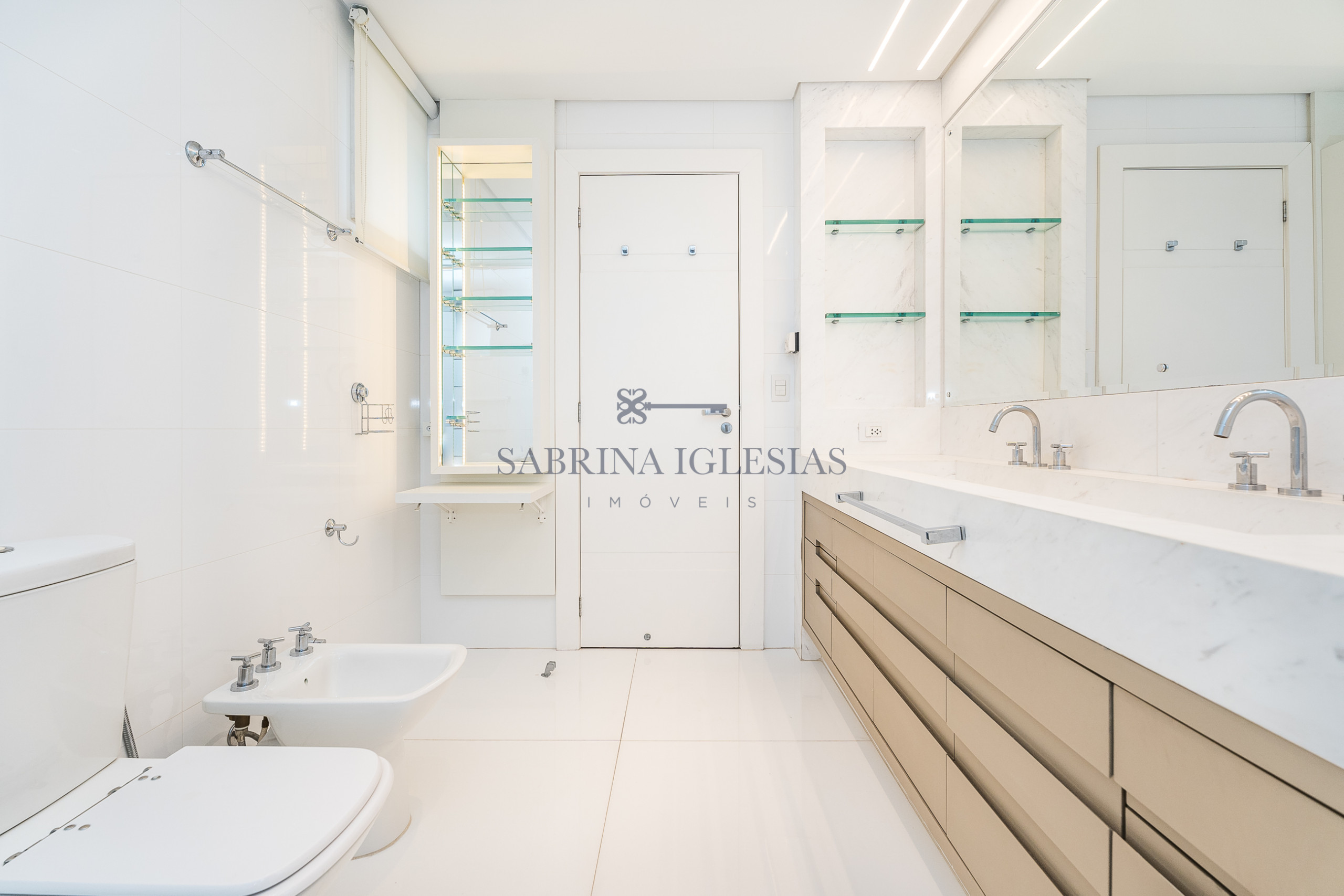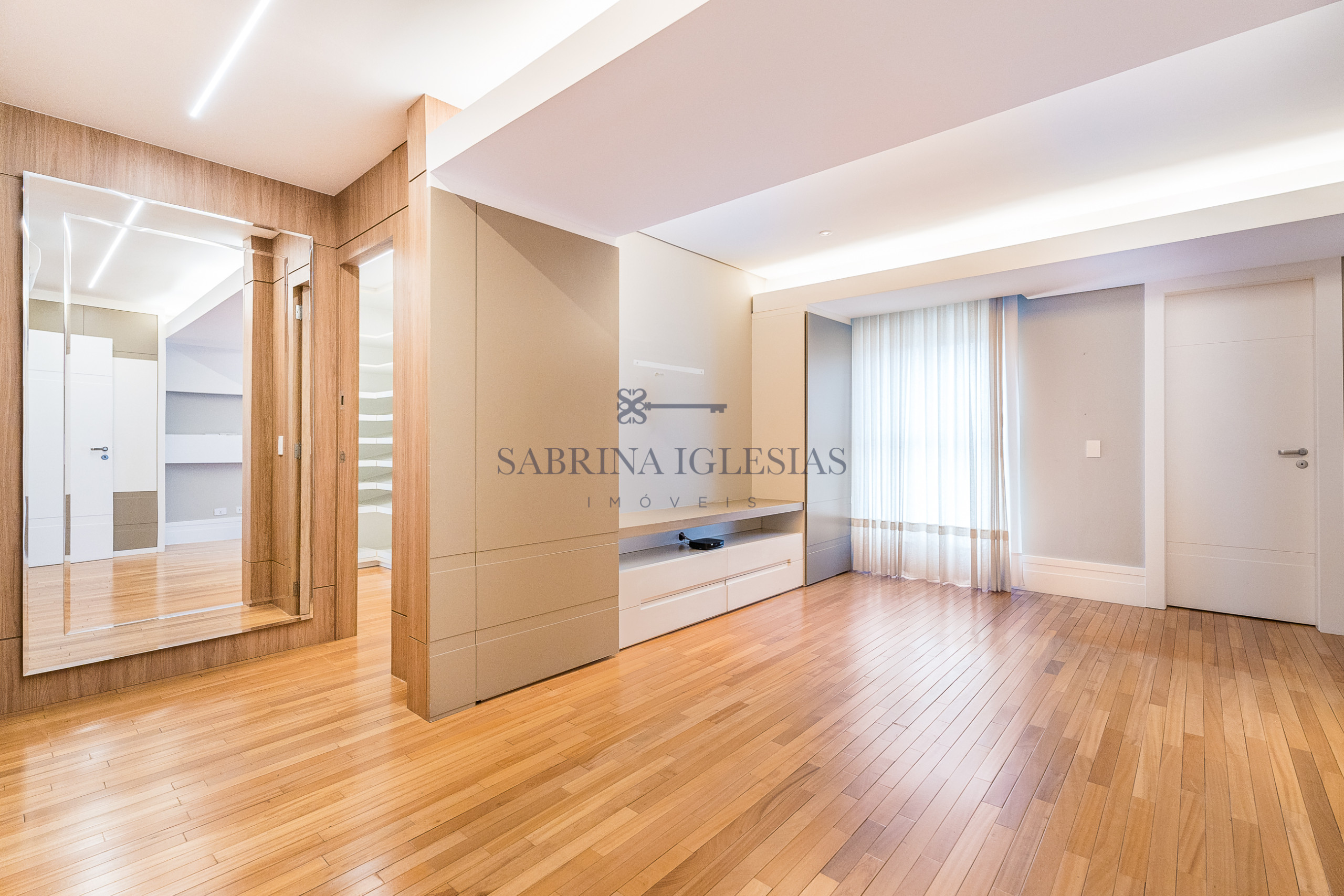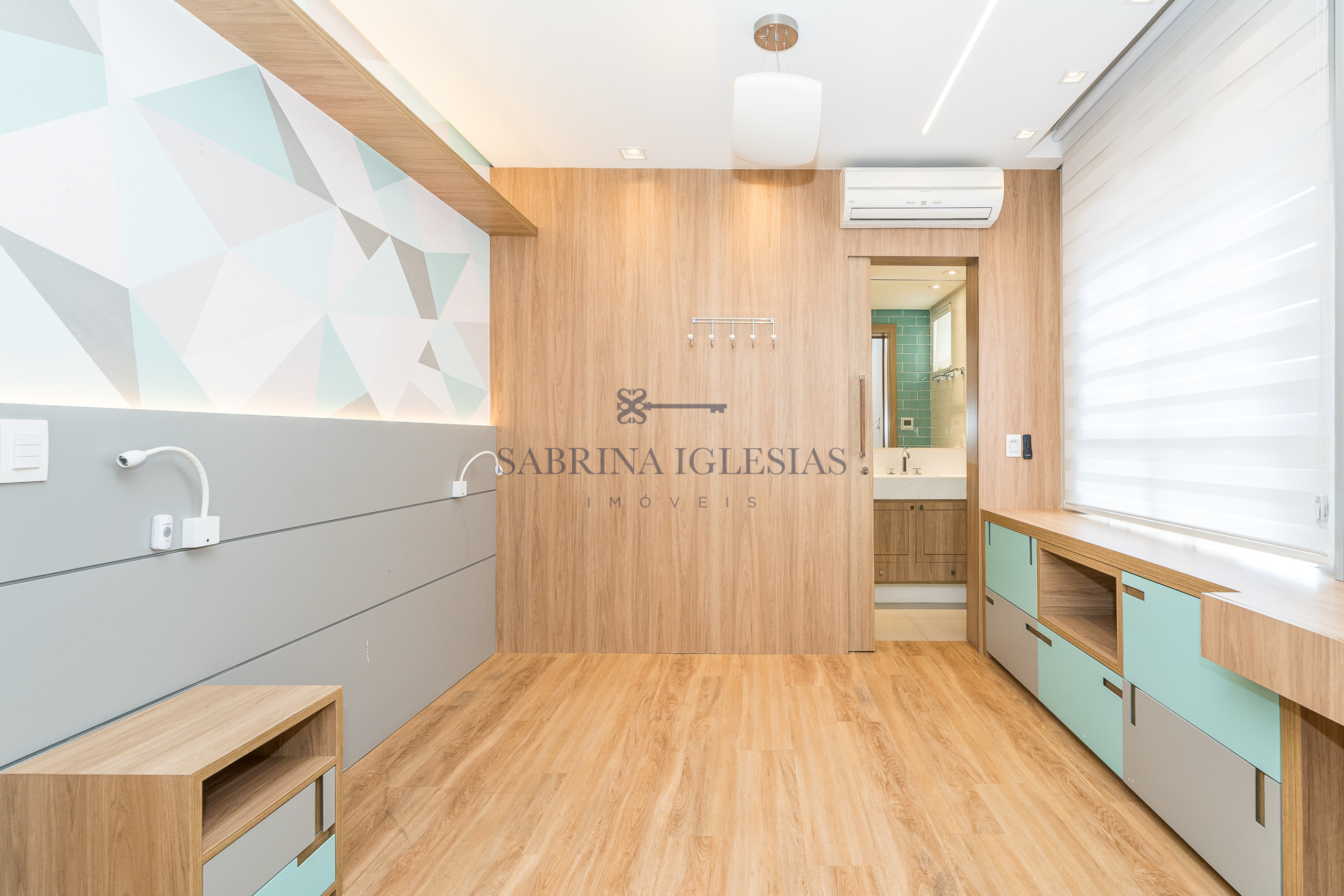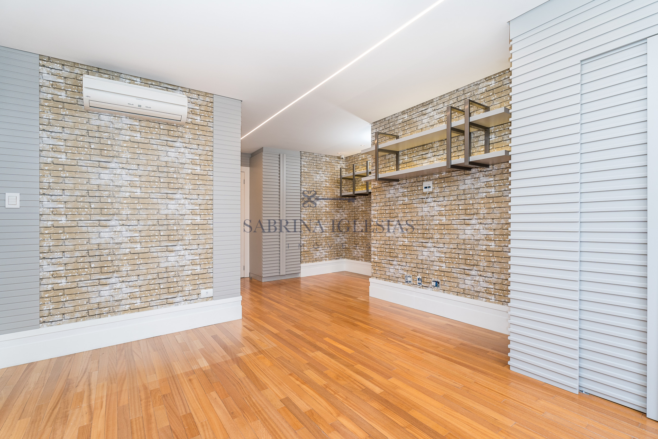 São três suítes, todos os ambientes climatizados, cortinas elétricas, sendo uma master com closet e muitos armários embutidos em todo o apartamento.