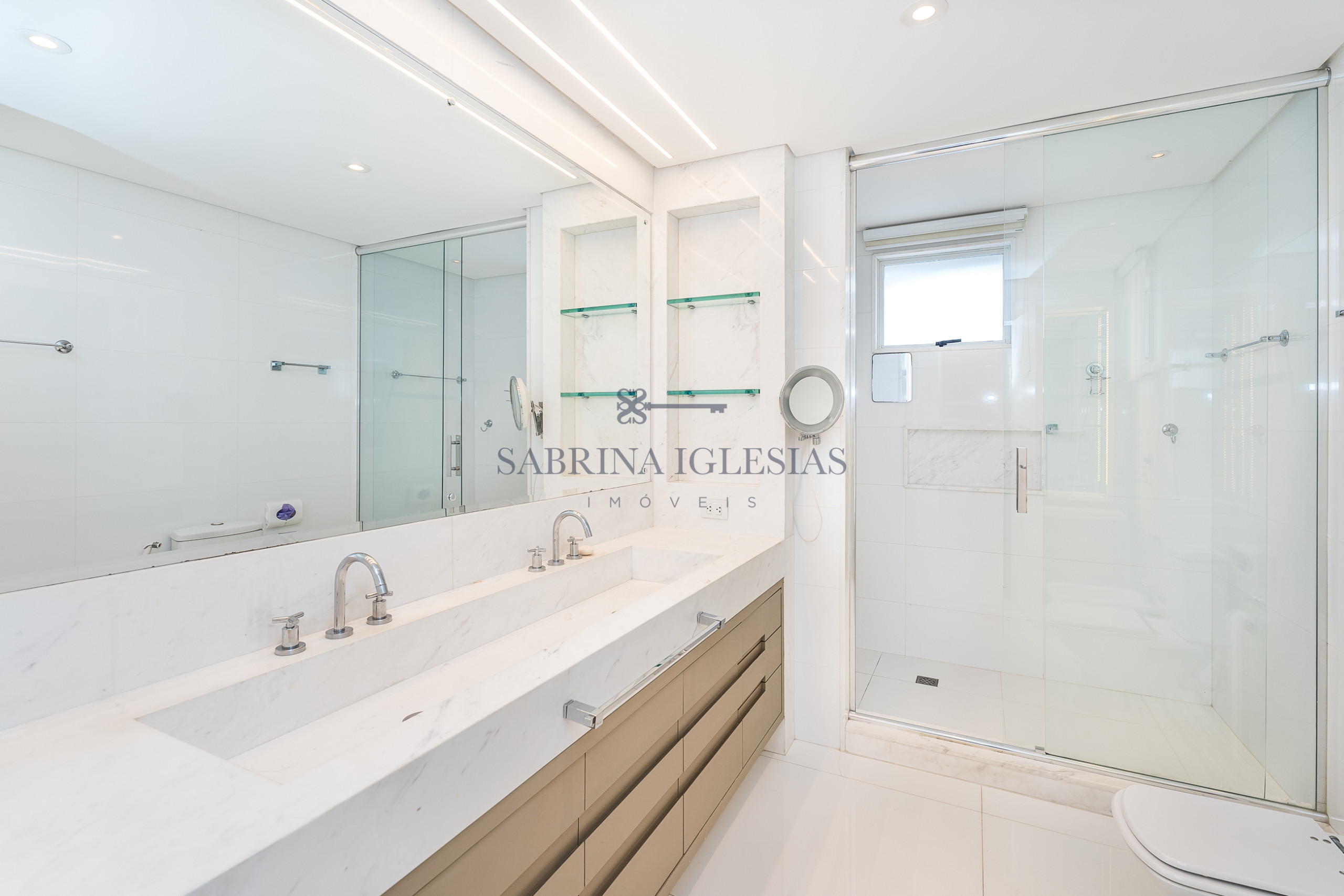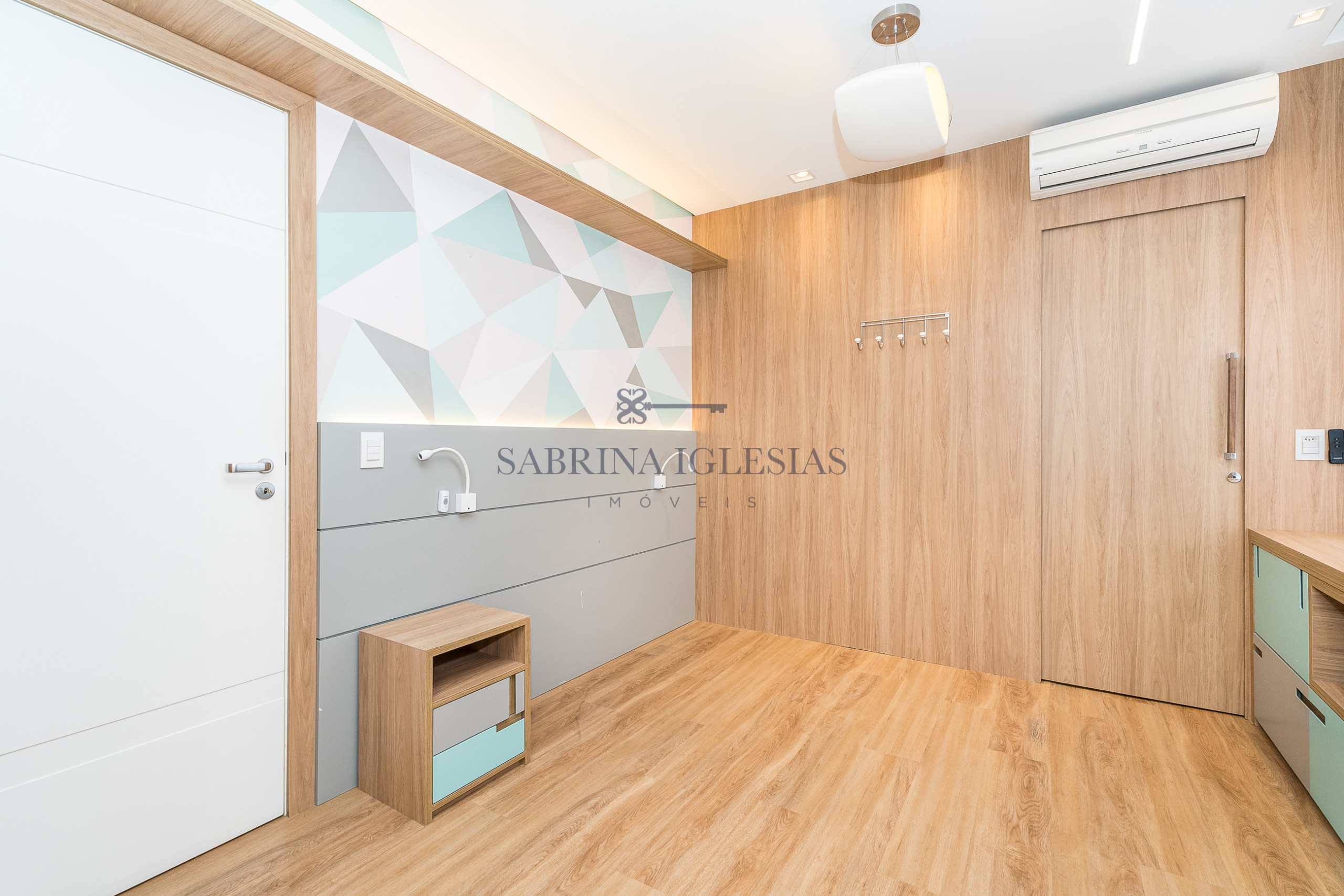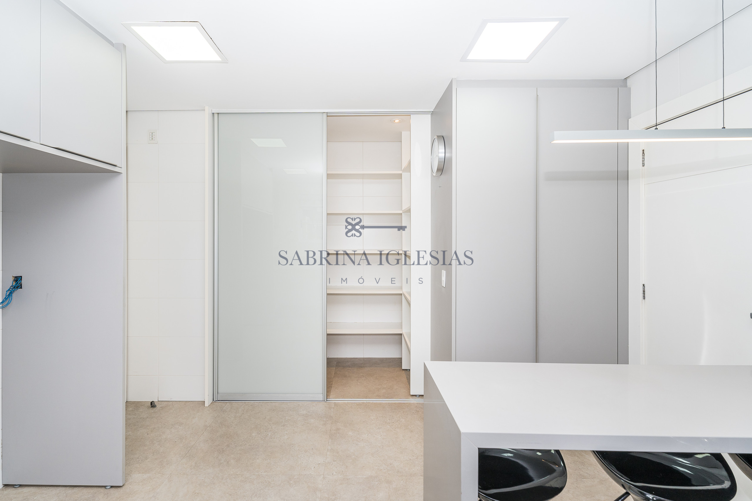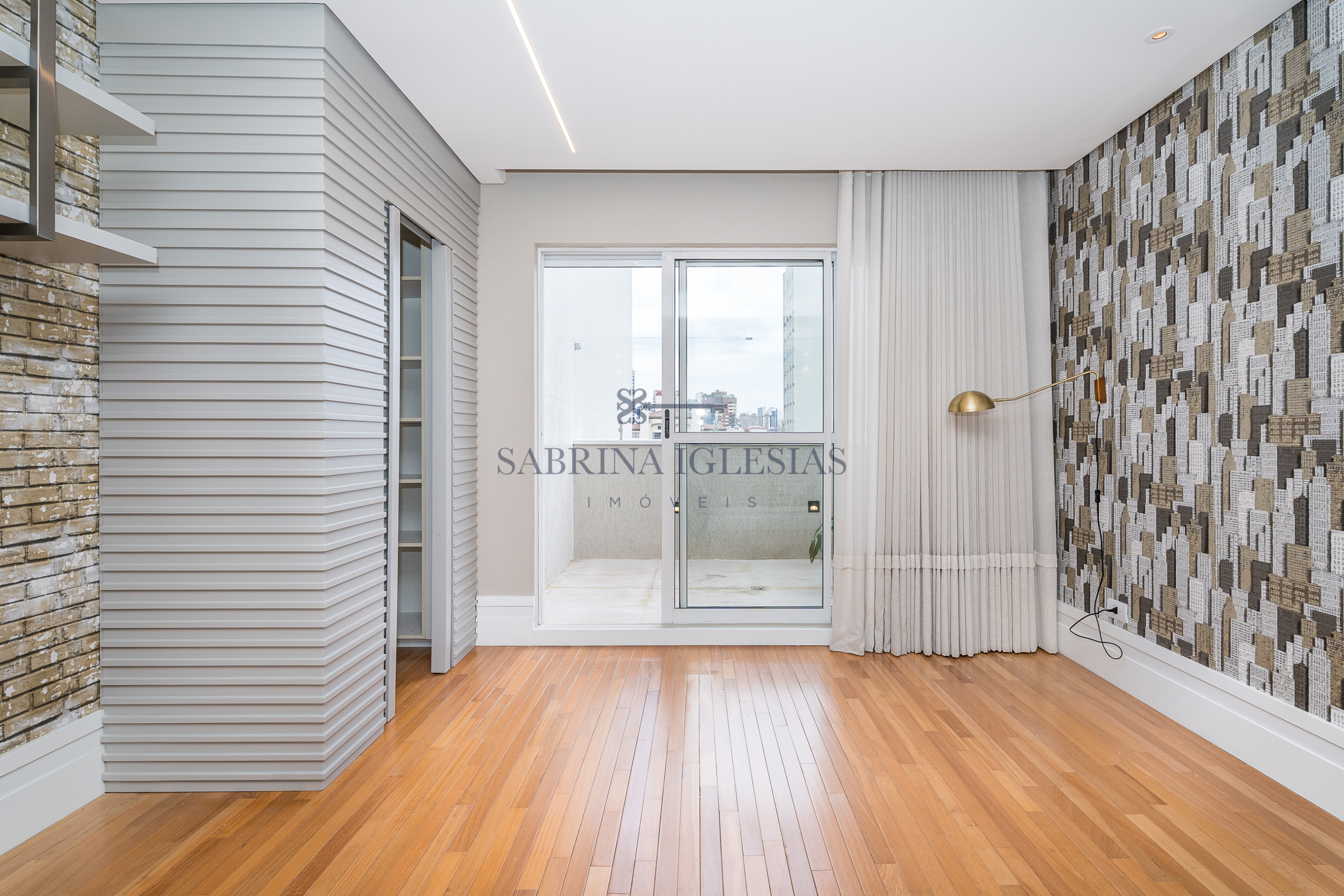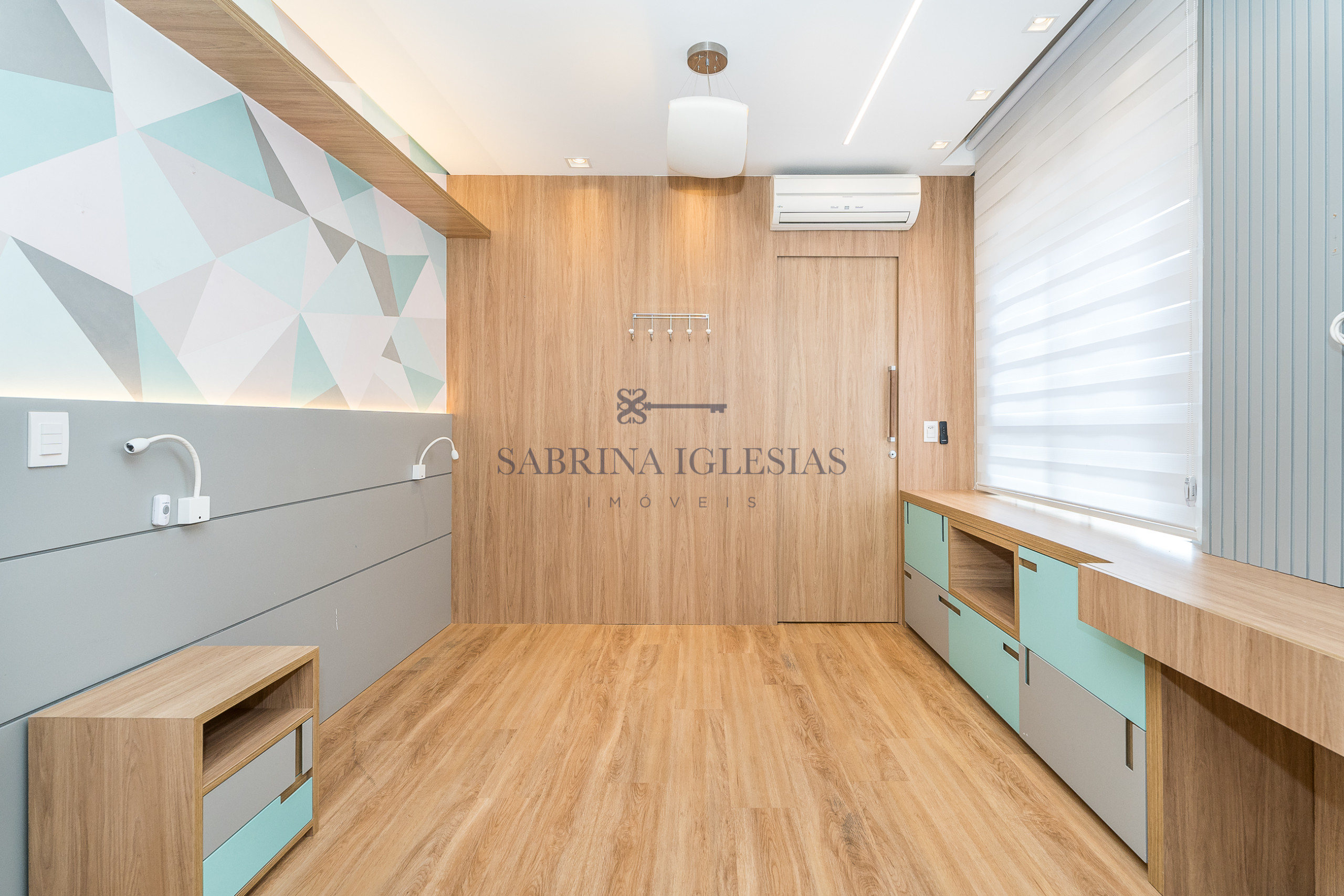 São três suítes, todos os ambientes climatizados, cortinas elétricas, sendo uma master com closet e muitos armários embutidos em todo o apartamento.