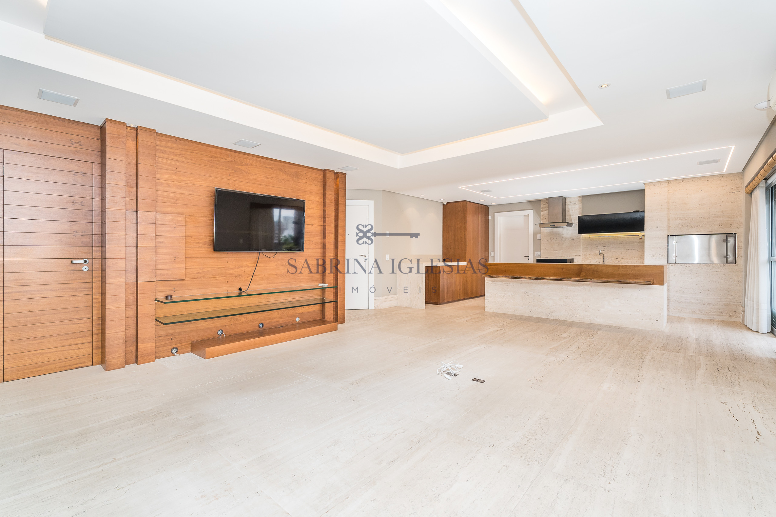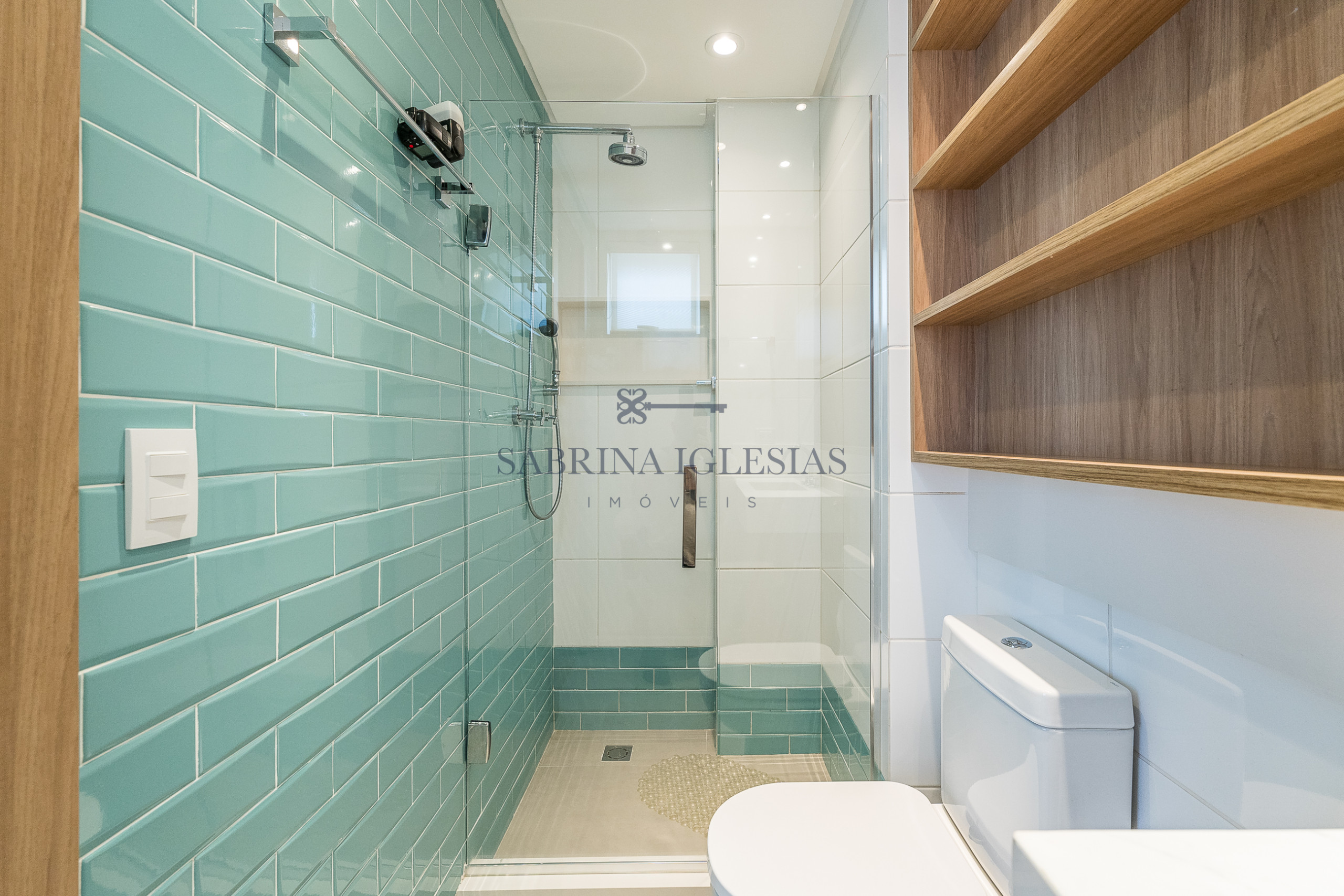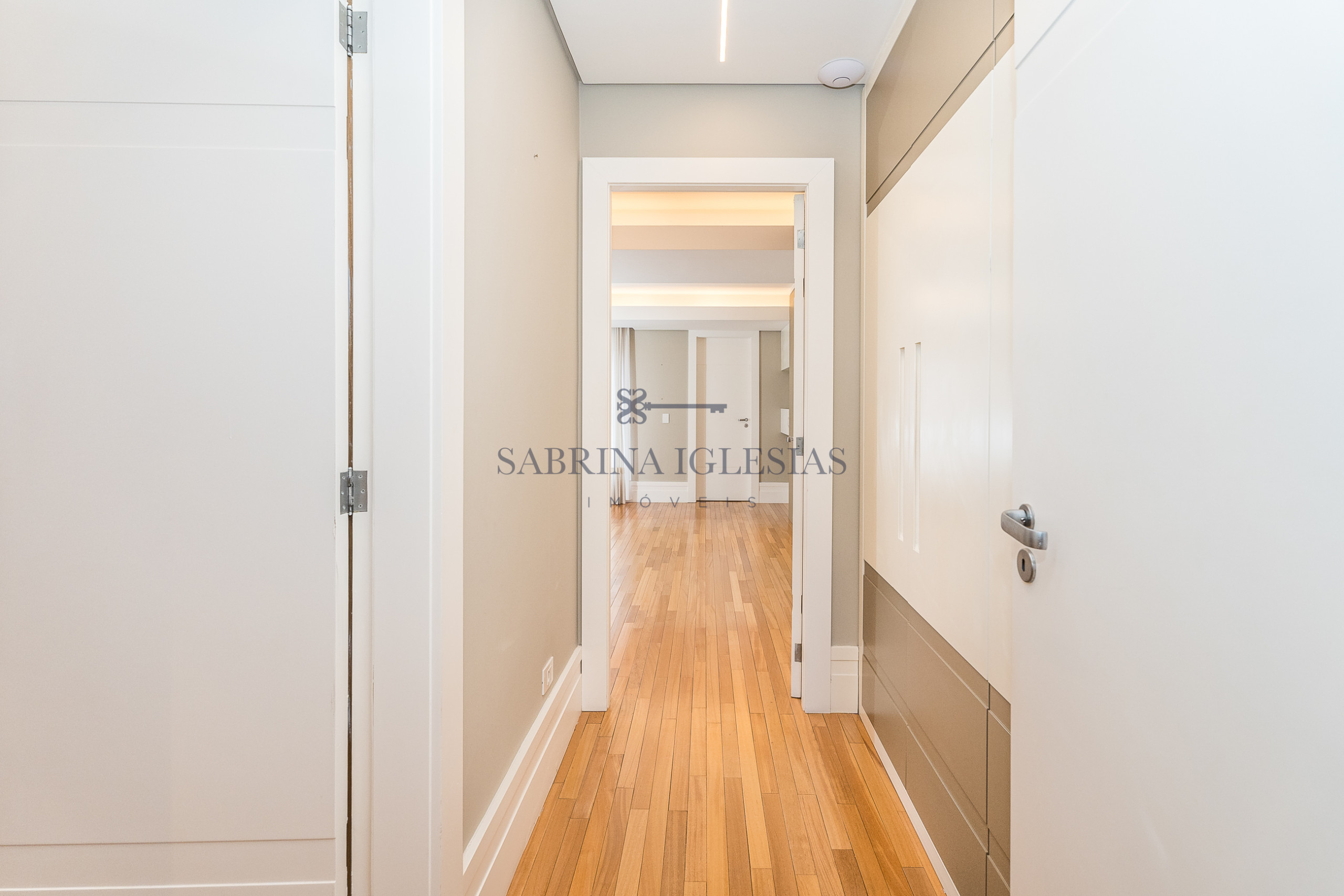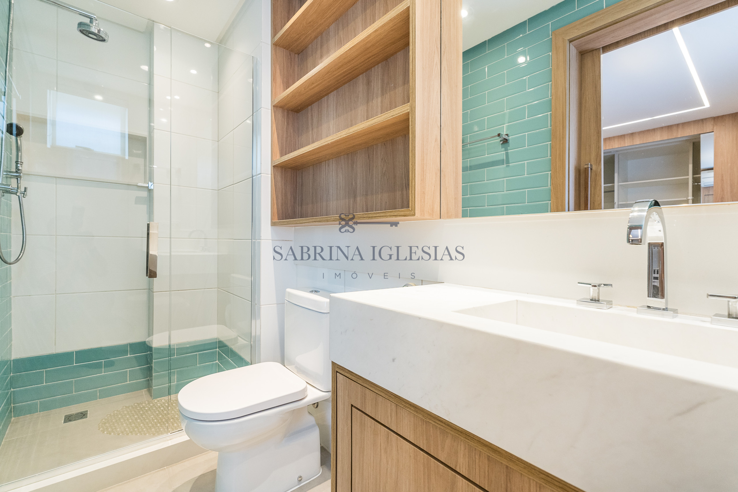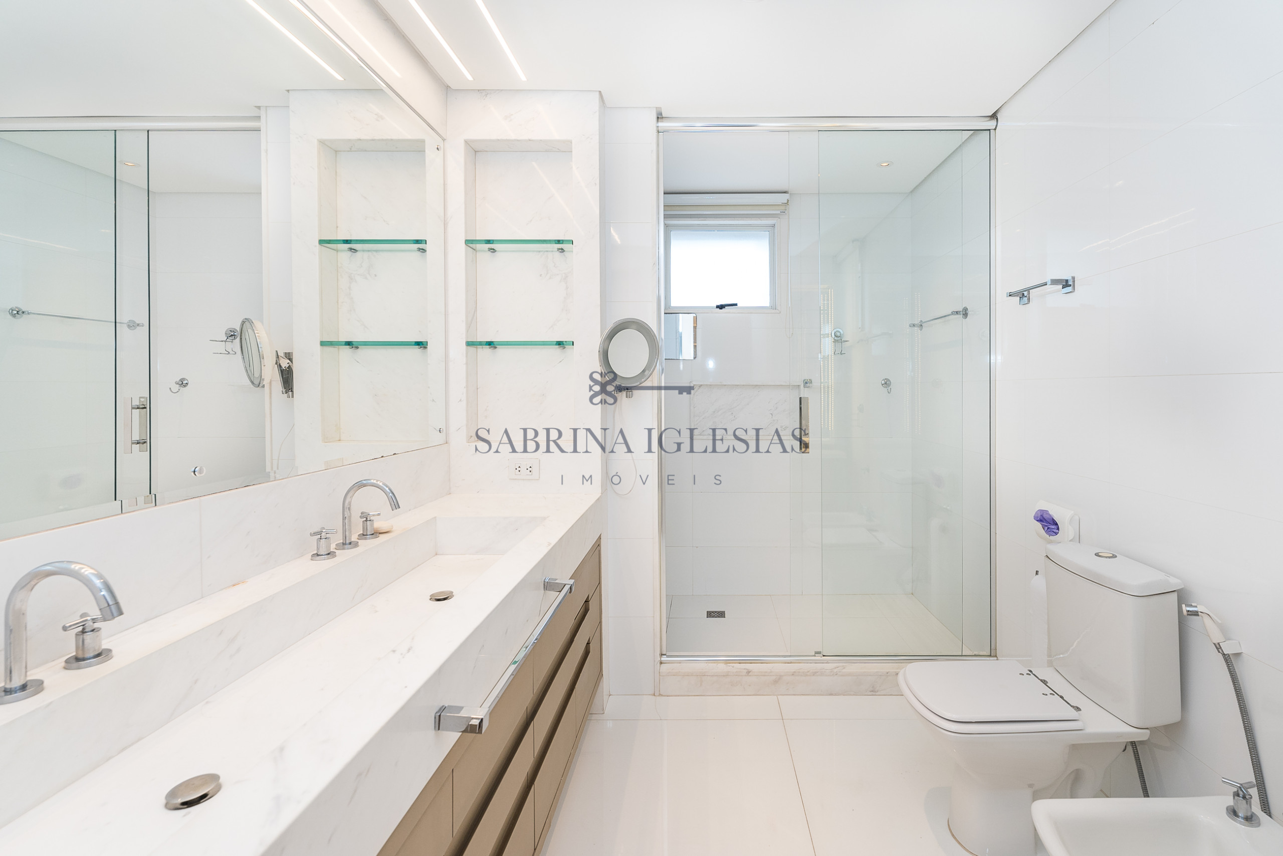 São três suítes, todos os ambientes climatizados, cortinas elétricas, sendo uma master com closet e muitos armários embutidos em todo o apartamento.