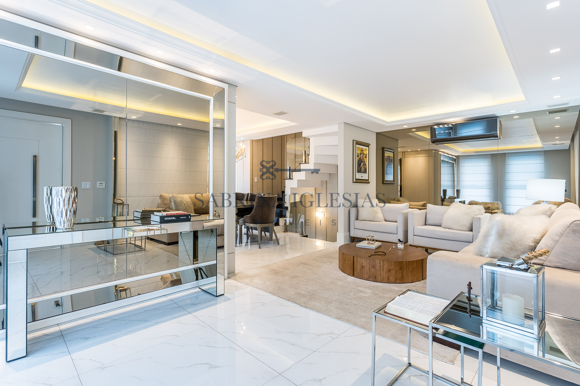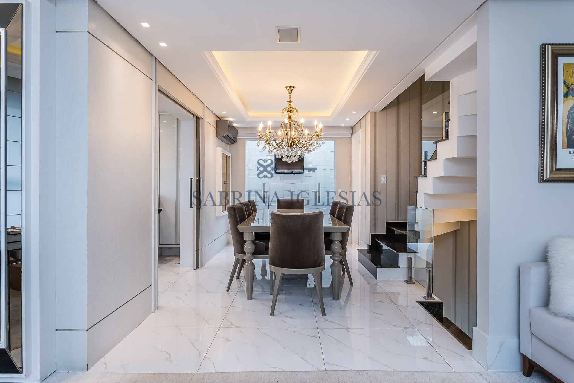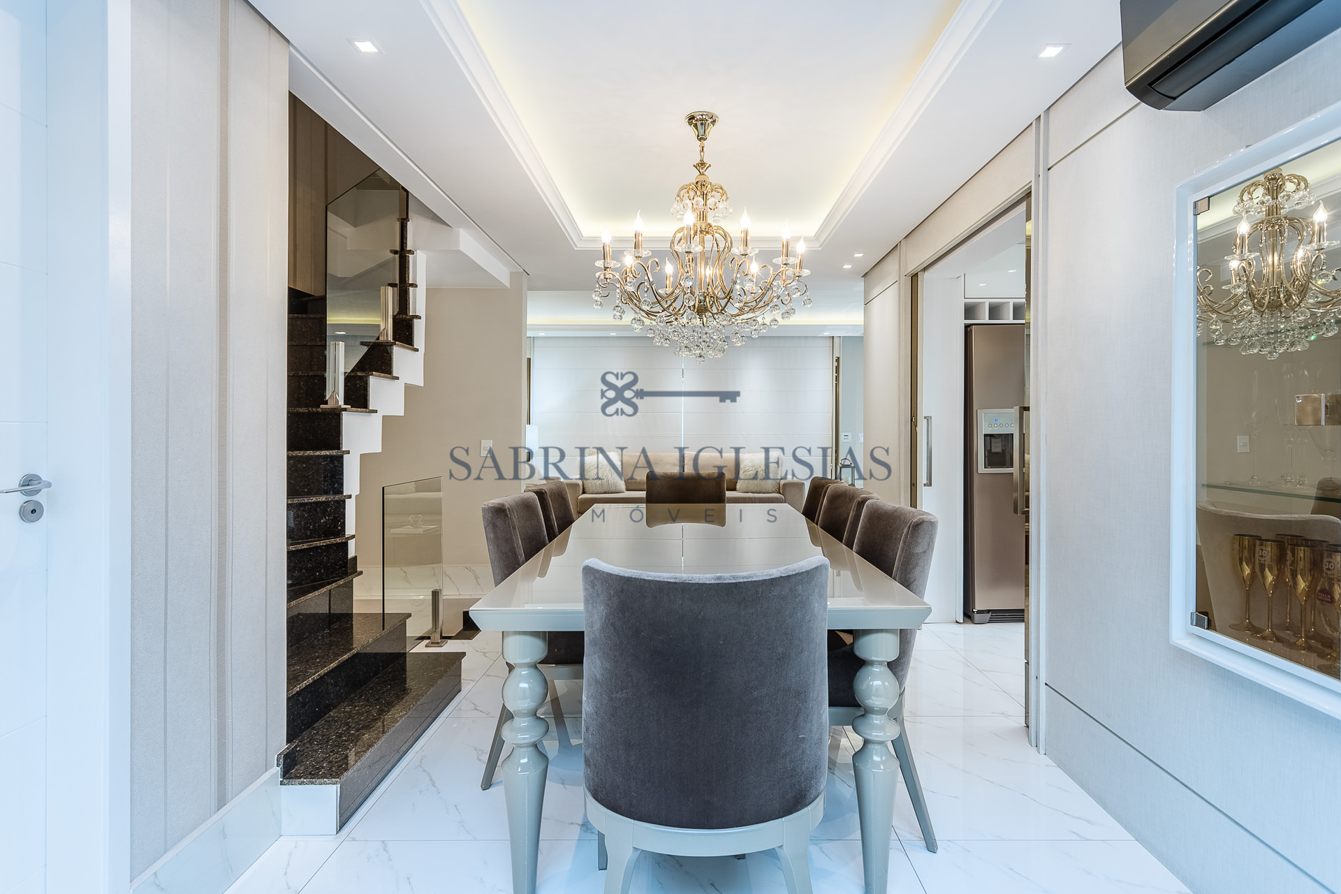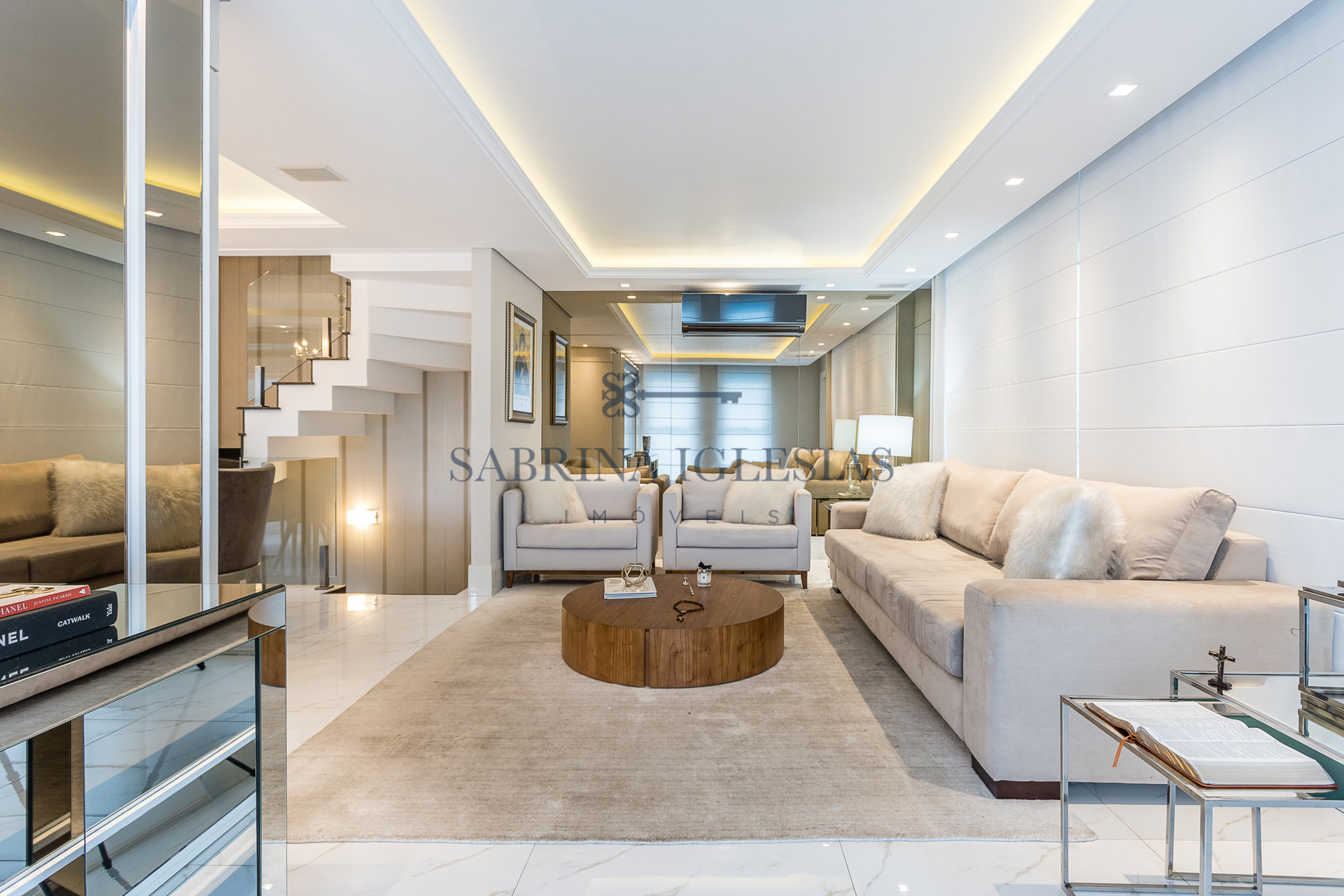 O EMPREENDIMENTO tem 04 (quatro) pavimentos e conta com 03 quartos, sendo 02 suítes com mármore, totalizando 05 banheiros e ar condicionado na casa toda. No último pavimento está localizada uma ampla suíte com ótima luminosidade e uma lareira a álcool em mármore carrara.