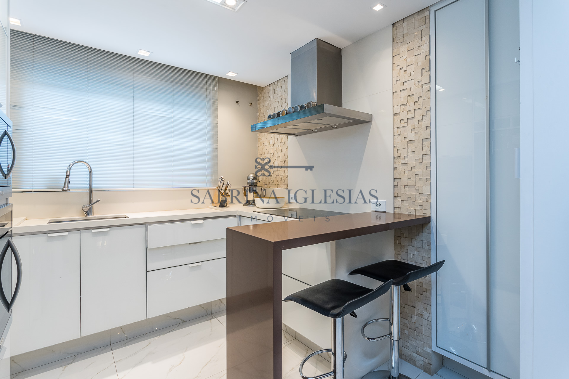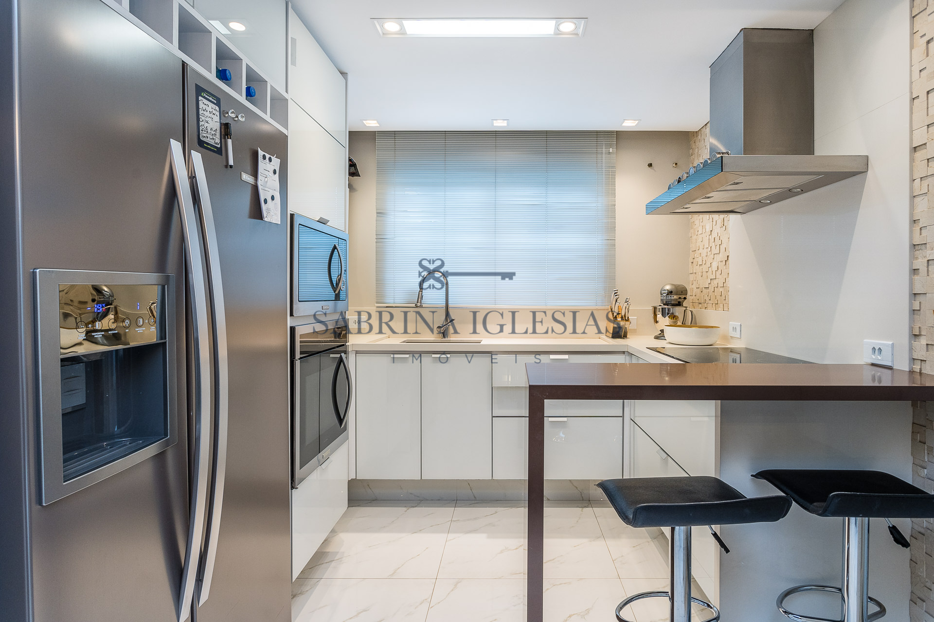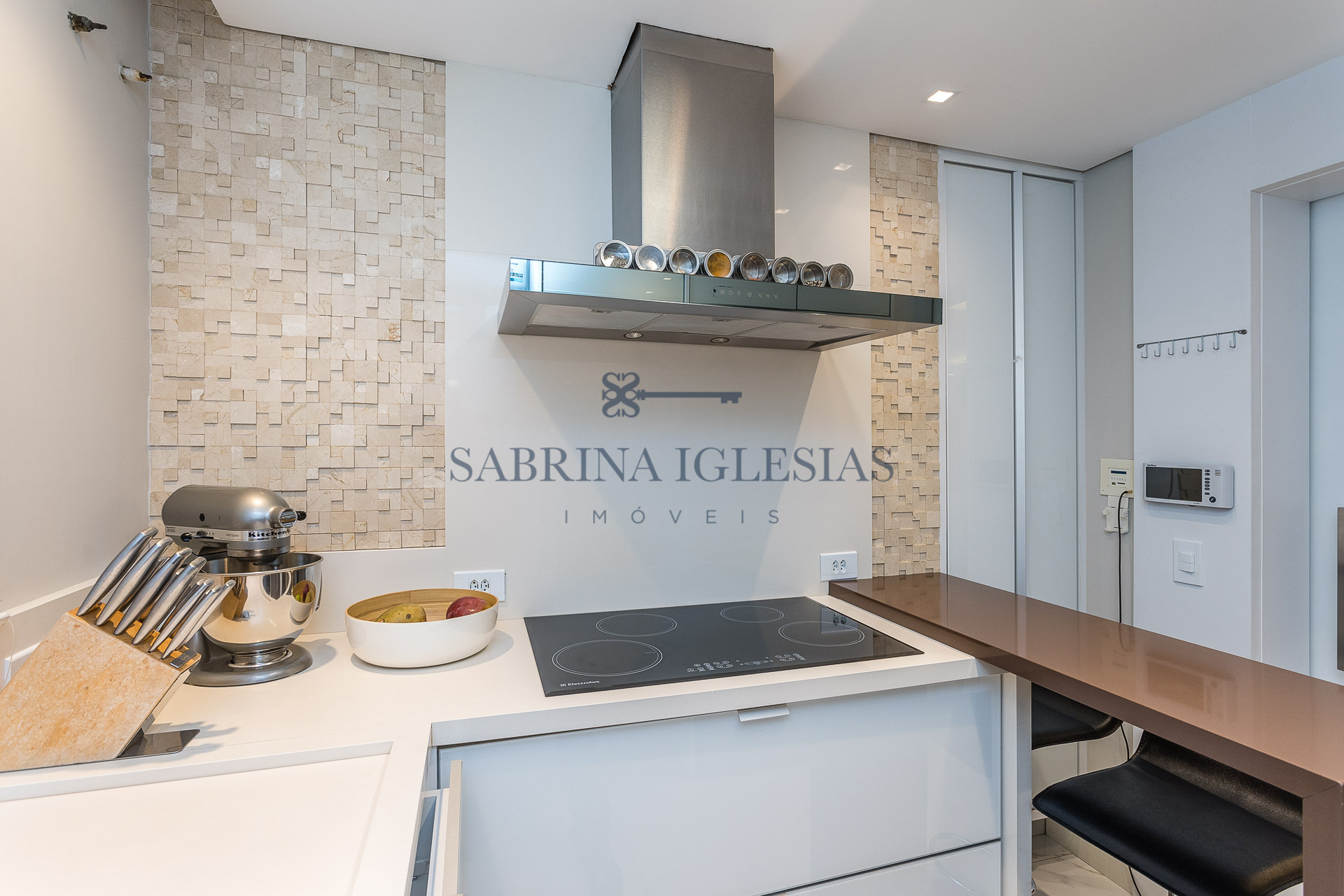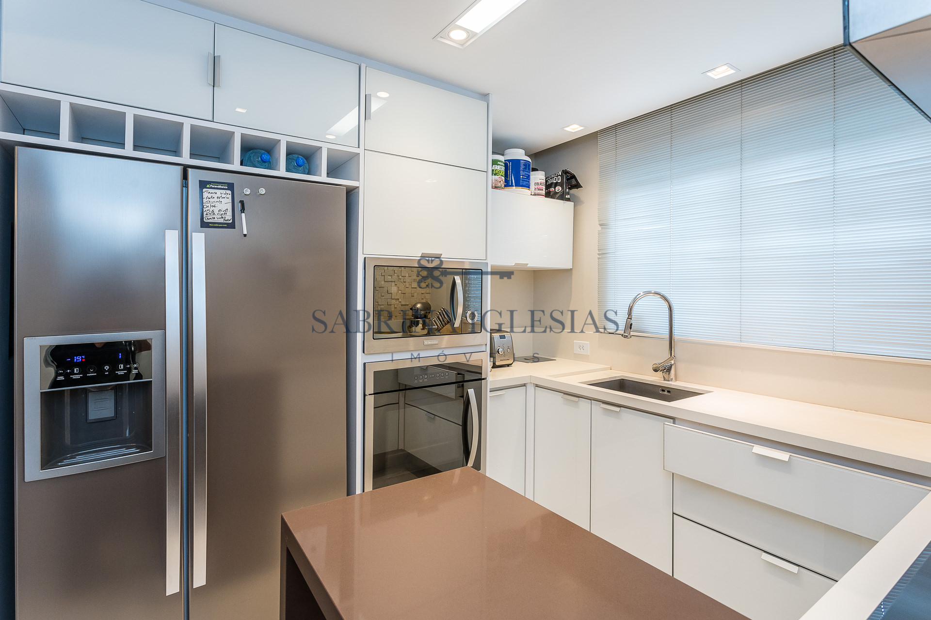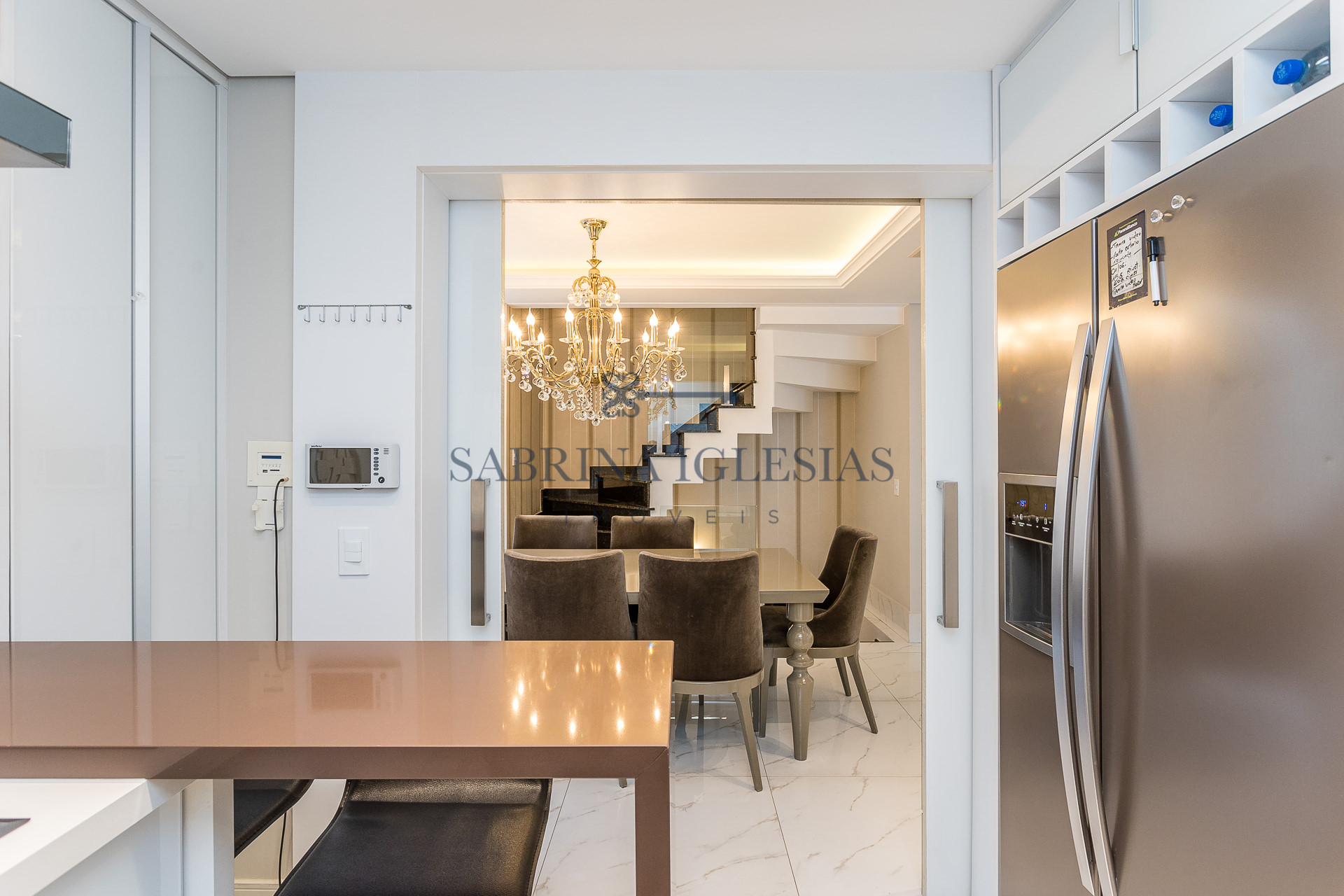 Possui jardim de inverno, lavanderia ampla e com sistema a gás instalado e móveis embutidos. Cozinha com cooktop e eletroeletrônicos modernos da linha Electrolux Home Pro.