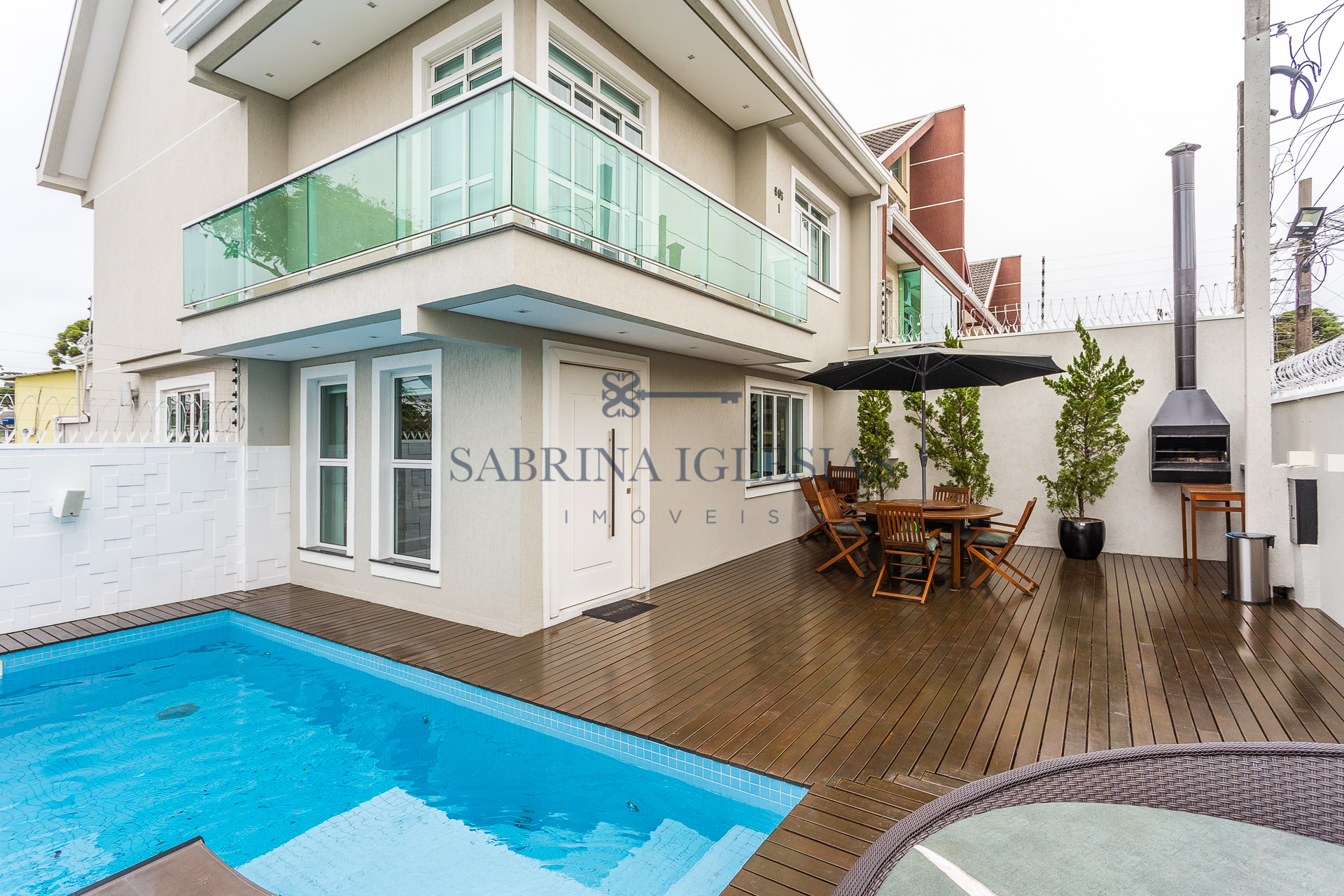 Um belo e confortável sobrado localizado em região residencial, próxima aos bairros Ahú e Cabral, a 10 minutos do centro de Curitiba.